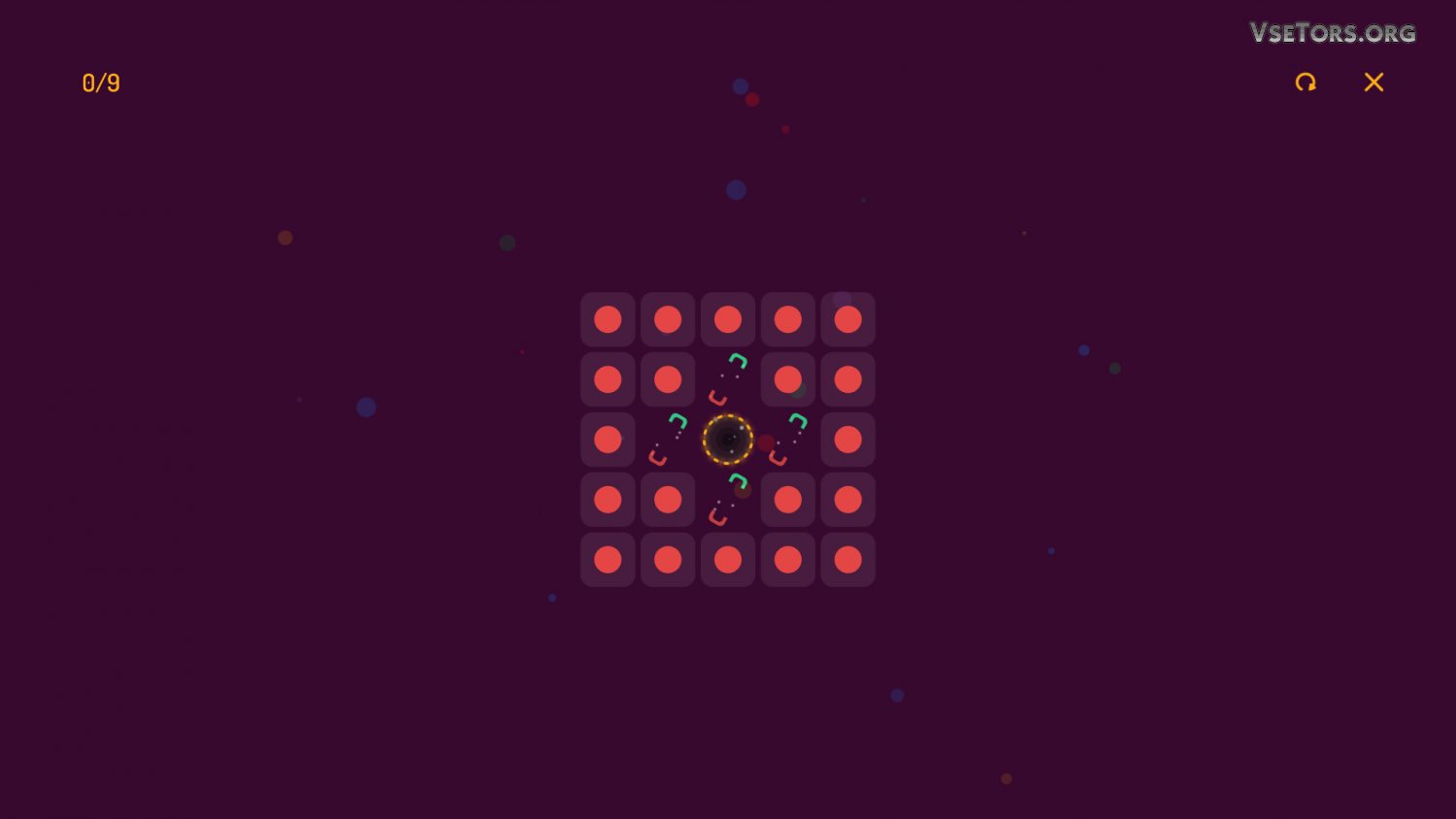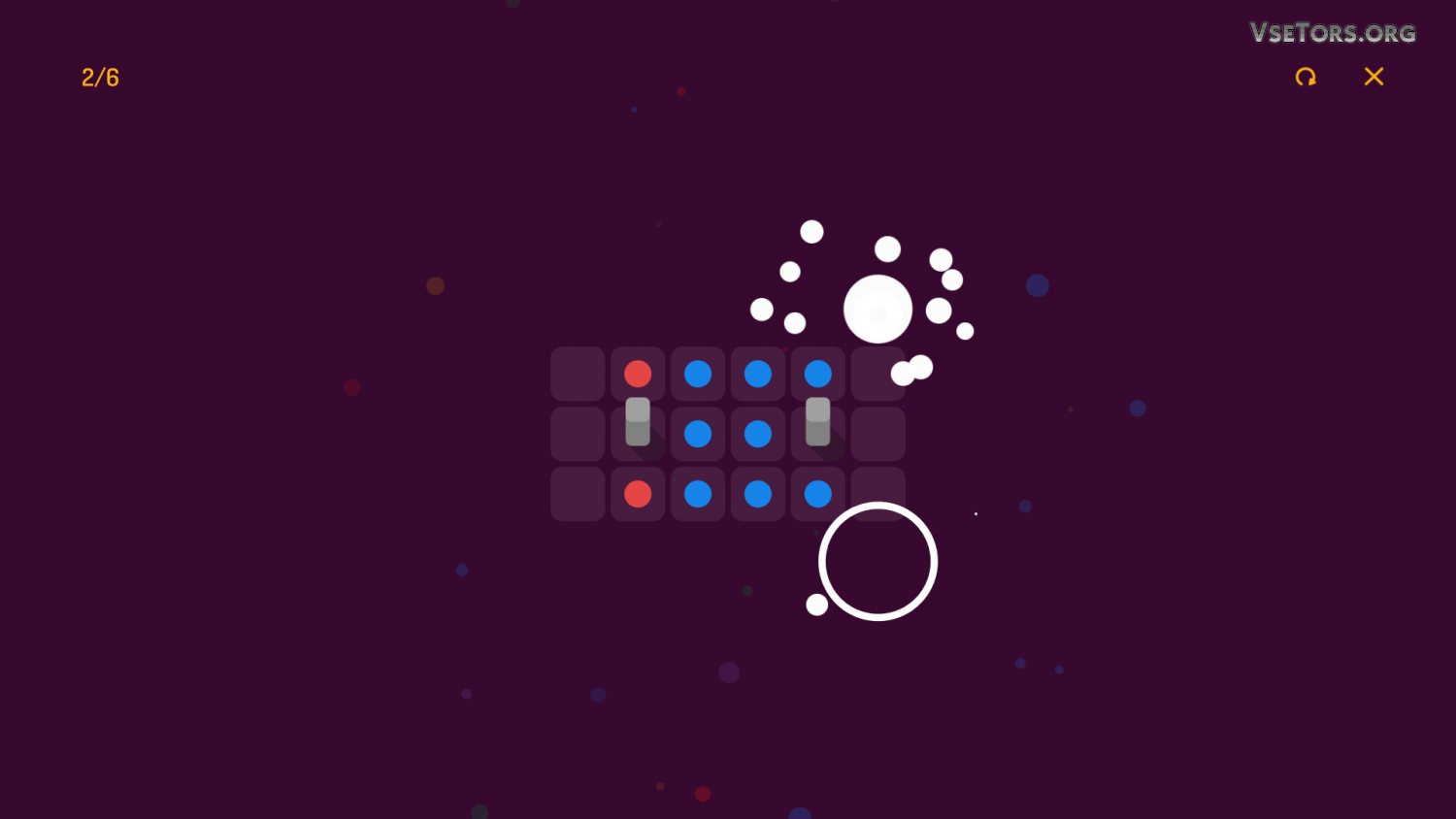 Все, что вам нужно делать, это толкать разноцветные точки в их соседей таким образом, чтоб они уничтожали и выталкивали с доски такие же по цветы фигуры. Ничего сложного. По крайней мере, на первых уровнях у вас точно не должно возникнуть никаких проблем. Но уже на более поздних уровнях вам придется столкнуться с такими проблемами, что трудно и представить. Вас будут ждать дополнительные препятствия, разные ловушки, черные дыры и червоточины, магниты, блоки, изменители цветов, и многое-многое другое. Все это создаст вам такое количество трудностей, с которым уже не справиться за несколько минут. На некоторые уровни и вовсе придется потратить уйму времени.