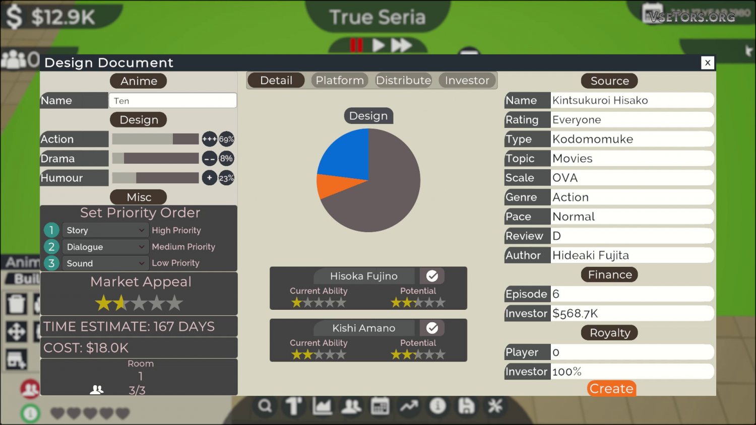 Далее все будет куда сложнее. Построив собственный офис, разделив его помещения на комнаты и кабинеты, расставив мебель и рабочие места, наняв работников и специалистов, художников и прочих сотрудников, вы должны будете приступить к самому сложному. Теперь вам в первую очередь нужно «отбить» потраченные на старте деньги, и для этого вам придется приступить к созданию аниме. Но с чего вы начнете? Будете снимать небольшие аниме-фильмы, лицензировать сериалы, создадите мангу, или сделаете еще что? Решать вам – главное, не прогореть.