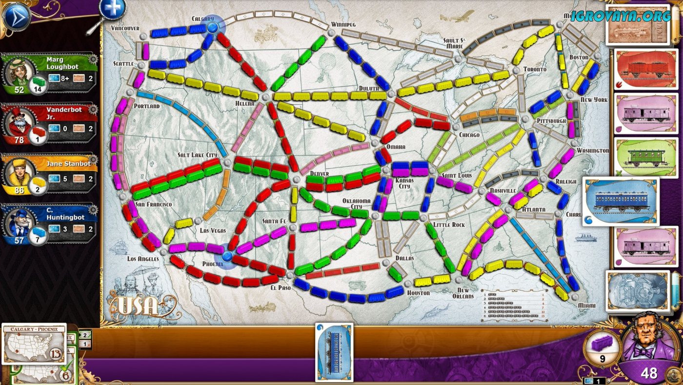 А еще стоило бы сказать о том, что в Ticket to Ride вам придется постоянно принимать решения, от которых будет зависеть буквально все, и при этом вы не будете знать, каким маршрутом передвигается соперник, и следует ли он маршруту билетов. У нас вы можете скачать Ticket to Ride торрент последнюю версию бесплатно на компьютер.