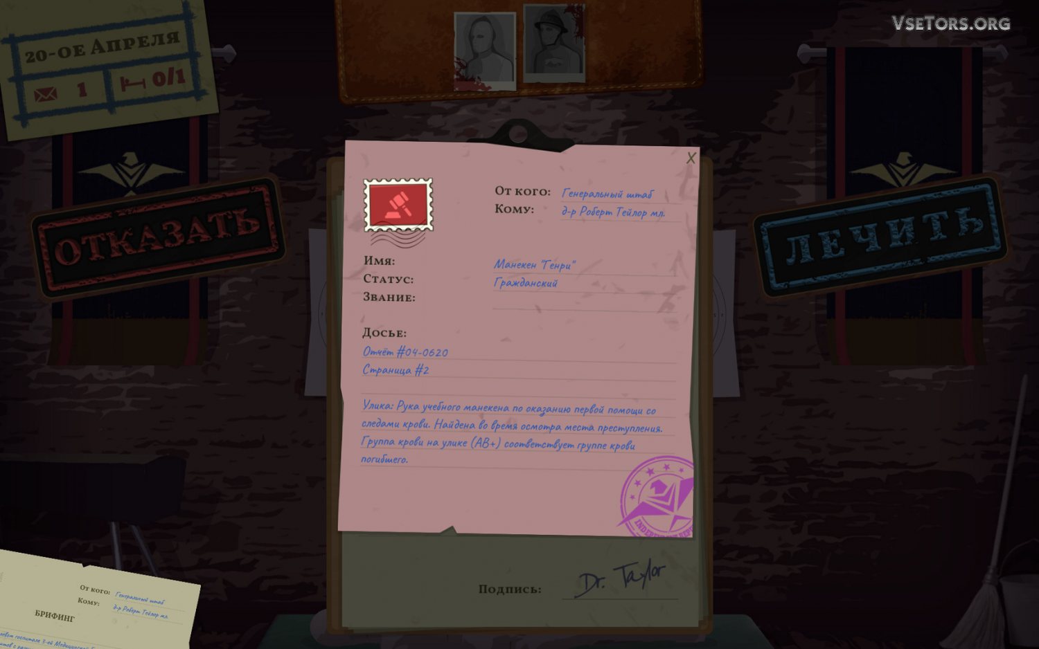 События игры происходят исключительно в полевом госпитале, в котором вы как раз-таки и будете работать в роли полевого доктора, врача. Полевой госпиталь, место не из простых – это не обычная больница, а место, в котором вечно не хватает лекарств, и в котором зачастую принимаются решения, от которых зависят жизни многих людей. И вот, теперь эти решения придется принимать именно вам, но уже после скачивания Field Hospital: Dr. Taylor's Story торрента с нашего сайта vsetors.org. Сыграйте роль полевого доктора, врача, которому необходимо решать, кого лечить, а кого оставить на растерзание судьбе, изучайте потенциальных пациентов, думайте, и постарайтесь не ошибиться.