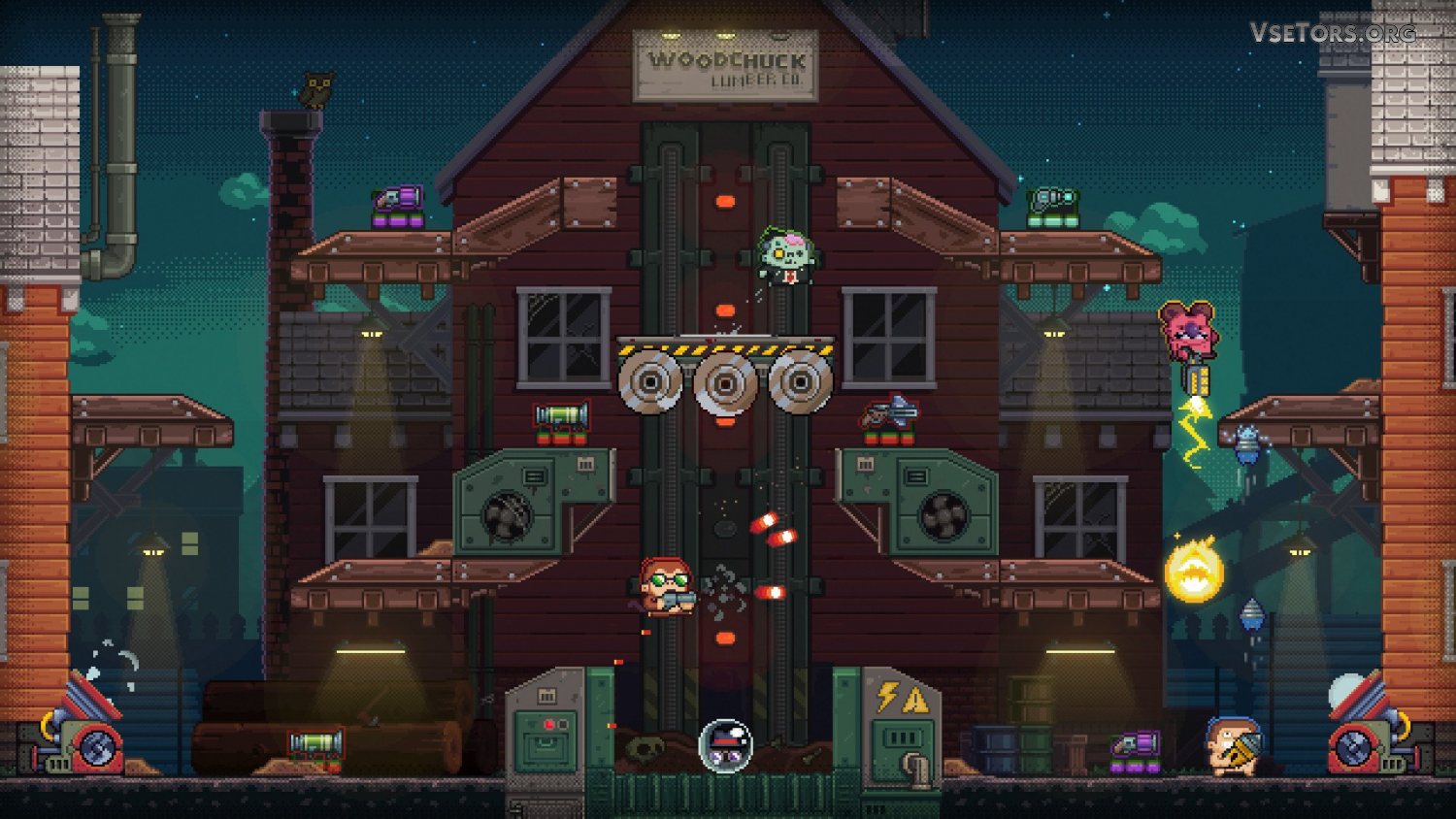 А еще вас наверняка порадует разнообразие карт, локаций, на которых придется сражаться. Мало того, что в вашем распоряжении будет с десяток уникальных карт, так еще и условия на каждой карте уникальны. Например, через одну время от времени будет мчаться сносящий все на своем пути поезд, в то время как на другой будет иметься лифт, давящий все, что попадет под него. В общем, будет интересно, и самое главное, весело… У нас вы можете скачать Guntastic торрент последнюю версию бесплатно на компьютер.