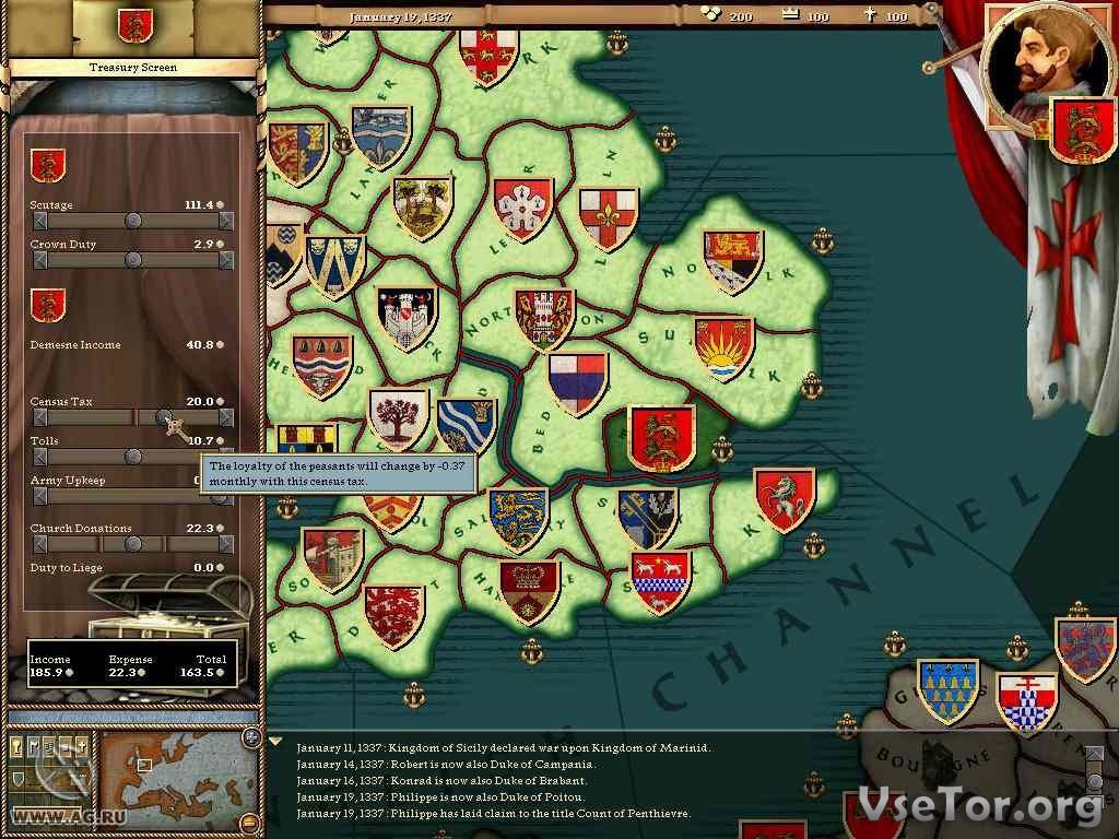 Crusader Kings – глобальная стратегия, в которой вам придется сражаться за собственную жизнь, выживать, захватывать вражеские территории, участвовать в интригах и заговорах, и делать все для того, чтоб стать величайшим правителем в истории…