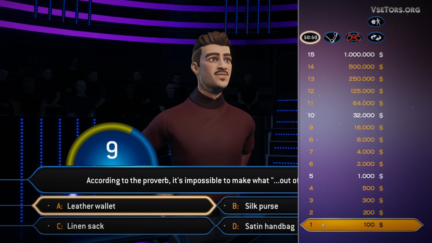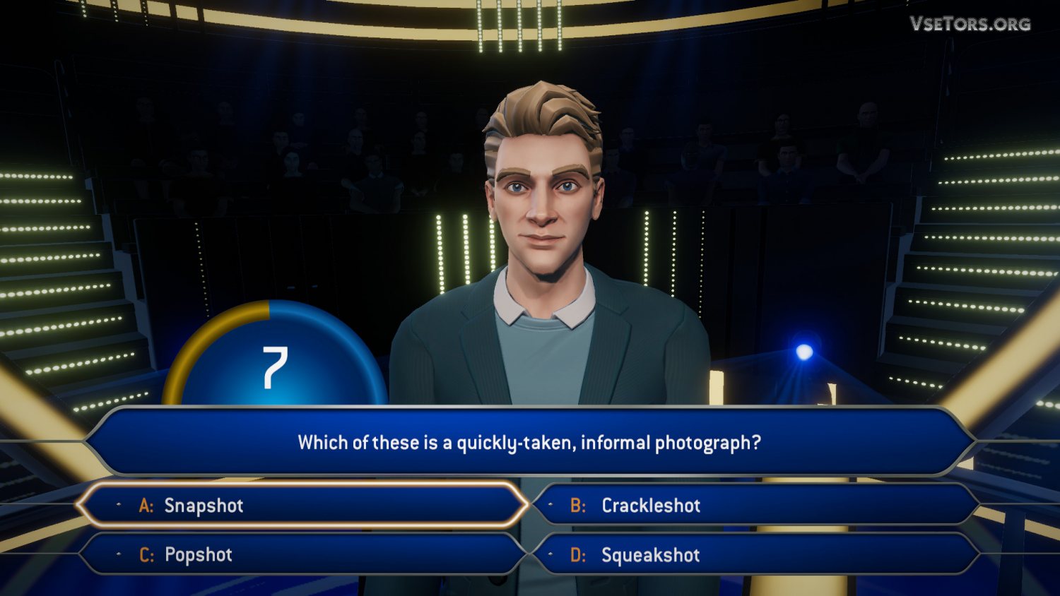 А еще в Who Wants To Be A Millionaire вас ждет много разных режимов игры. Есть и тренировочный режим, в котором вы сможете разблокировать темы вопросов, и режимы для нескольких человек. Например, есть семейный режим, режим по очереди, в котором могут одновременно принимать участие до 10 человек, и свободный режим, рассчитанный на 4 человек. Устраивайте «батлы», соревнуйтесь, ищите ответы на вопросы и побеждайте… У нас вы можете скачать Who Wants To Be A Millionaire торрент последнюю версию бесплатно на компьютер.