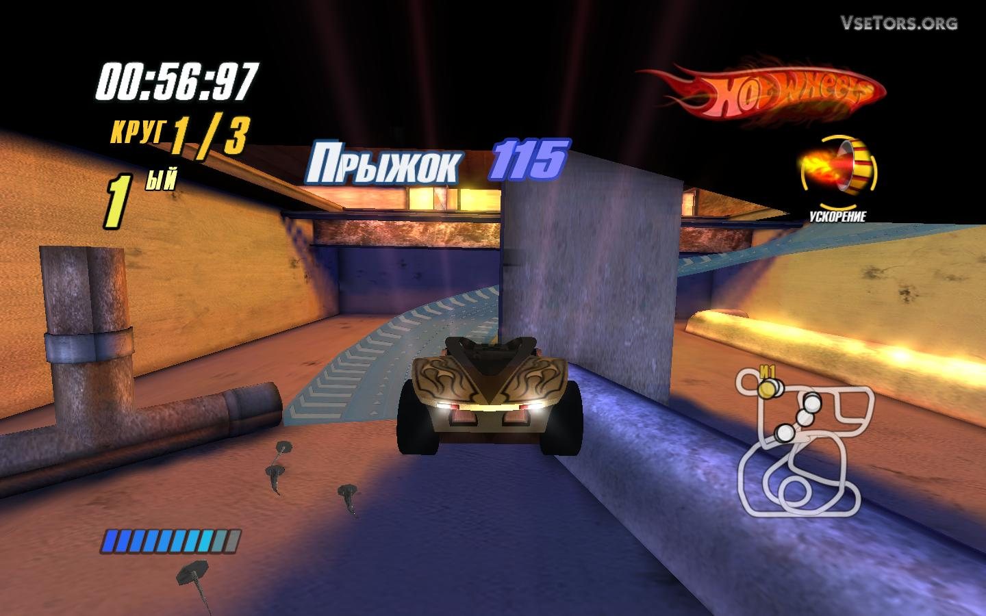 Ну и конечно же, в такой игре не могло обойтись без вооружений, которые помогут вам и противнику насолить, и защититься, в случае необходимости, и просто напакостить соперникам прямо перед финишем. Это и ракеты, и различного рода ловушки, и мины, которые можно скидывать посреди трассы, и даже ударные волны с дымовыми завесами. Иными словами, победить в Hot Wheels: Обгони скорость! не проблема, если использовать весь потенциал игры… У нас вы можете скачать Hot Wheels: Обгони скорость торрент последнюю версию бесплатно на компьютер.