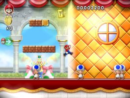 Конечно, есть и бонусы, знакомые каждому. Например, звездочки и цветочки, благодаря которым главный герой может плеваться огненными шарами, грибы, позволяющие расти, и многое другое. Но также появилось и несколько новых функций, среди которых возможность уменьшиться в два раза и примерить панцирь черепахи. В остальном же это все та же игра, в которой вам придется проходить один за одним многочисленные уровни, прыгать по грибам, перепрыгивать пропасти, кататься на двигающих платформах, побеждать врагов. собирать монетки, и не только.