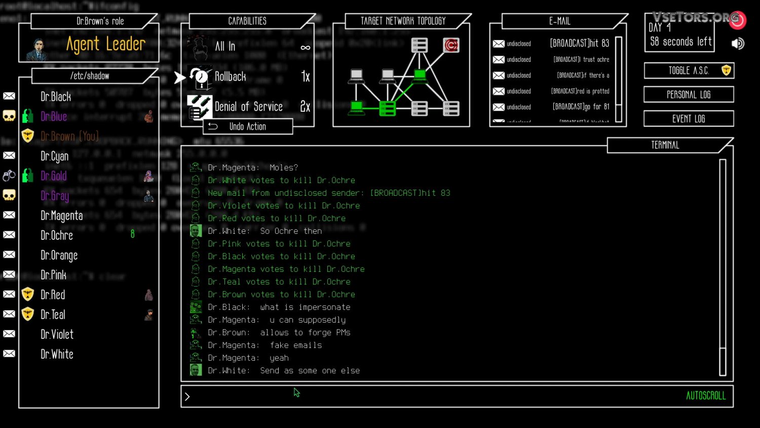 В целом игра чем-то похожа на известную дедуктивную игру «Мафия», за исключением лишь нескольких моментов. Например, главное отличие заключается в наличии огромного количества навыков, которые игроки могут развивать, и которые помогут в дальнейшем решать разнообразные задачи.