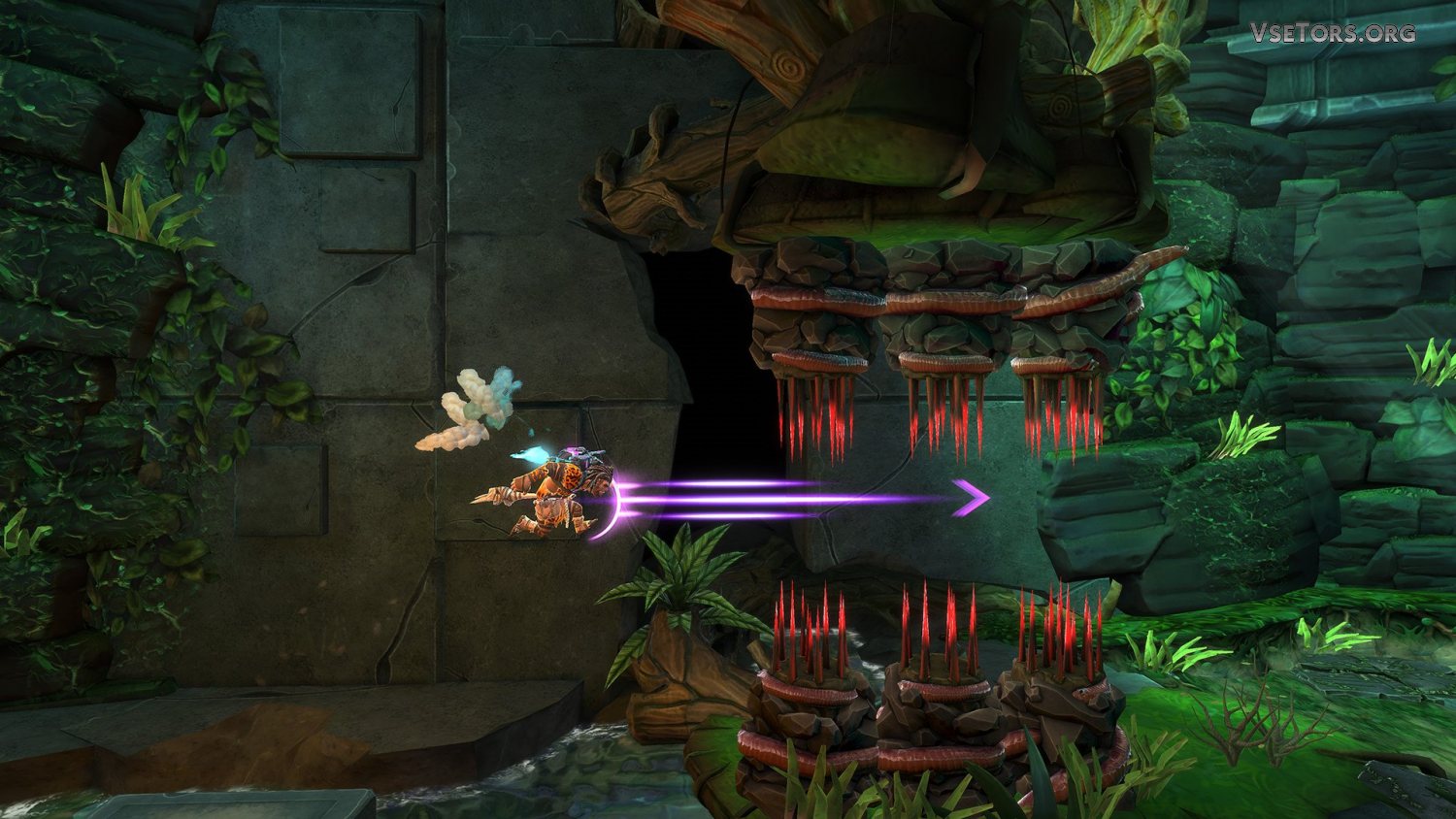 Игровой процесс тут, к слову, довольно прост и ничего принципиально нового не предлагает. Вы будете исследовать огромные просторные двухмерные локации, решать головоломки, связанные по большей части со взаимодействием с окружающим миром, драться с врагами, и выживать, попутно осваивая новые приемы и умения. Единственное новое, это реактивный ранец, который в некоторых случаях будет просто незаменимым.
