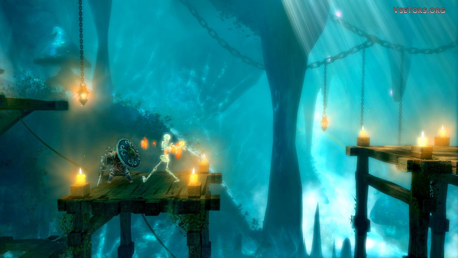 В вашем распоряжении будет три уникальных персонажа, и каждый со своими уникальными способностями, навыками и данными. Например, есть волшебник, что может призывать разные предметы, которые помогают в сражениях и решении головоломок, а есть и рыцарь, что способен сотворить самый настоящий хаос, круша все вокруг и уничтожая врагов своими безумными атаками. Также, есть и третий персонаж, вор – вор использует исключительную ловкость и хитрость, а еще точность.