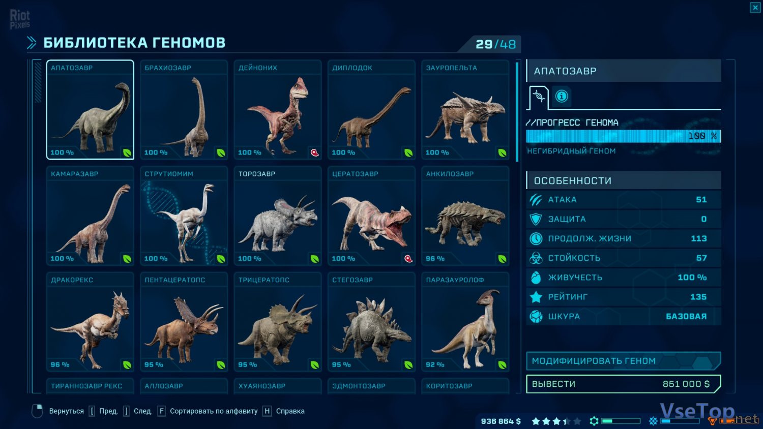 Далее придется заняться созданием динозавров, и поверьте, это очень интересно. Мало того, что вы сможете создавать известные породы динозавров, так можно еще заниматься и исследованием новых пород. Изучайте ДНК, создавайте новые виды, следите за их характеристиками и размещайте их в парке так, чтоб они не мешали жизни друг друга.