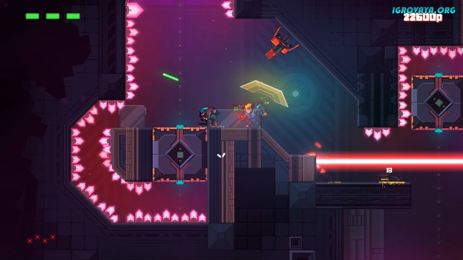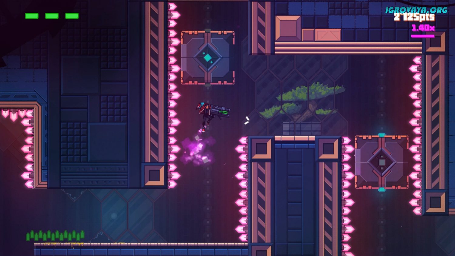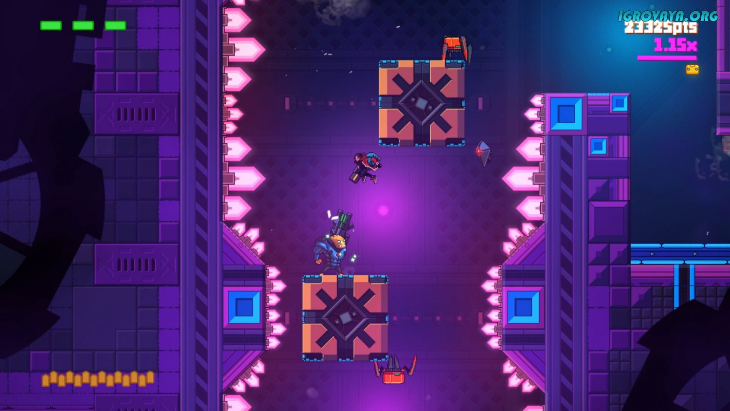 Во-первых, в этой игре уровень хардкорности достаточно высок, и погибать тут вам придется довольно часто. Во-вторых, сами уровни тут устроены, как лабиринты-головоломки, и вам придется по ходу прохождения досконально продумывать свой маршрут. Ну а третий момент касается уже вооружения. Вы используете по умолчанию плазменный меч и щит, но в ходе прохождения уровней сможете подбирать вооружения врагов. Более того, после того, как закончатся боеприпасы, можно метать то же оружие во врагов.