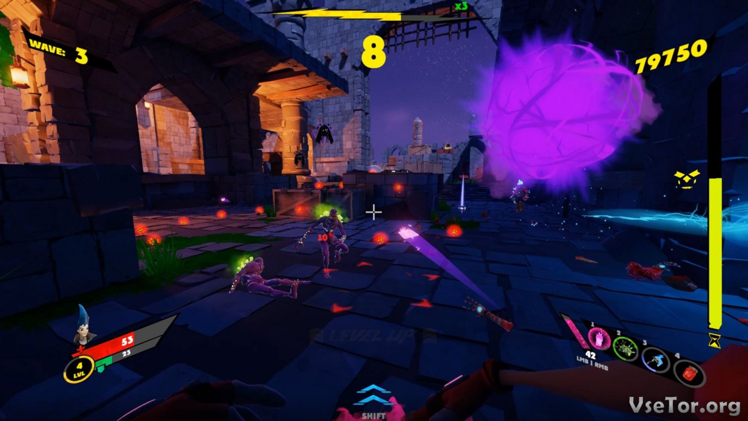 Играть придется в режиме вида от первого лица. Вы будете путешествовать по различным локациям, уничтожать нечисть в руинах и подземельях, сражаться с монстрами всем, что попадется вам под руку, и получать бонусы за самые красивые и быстрые убийства.