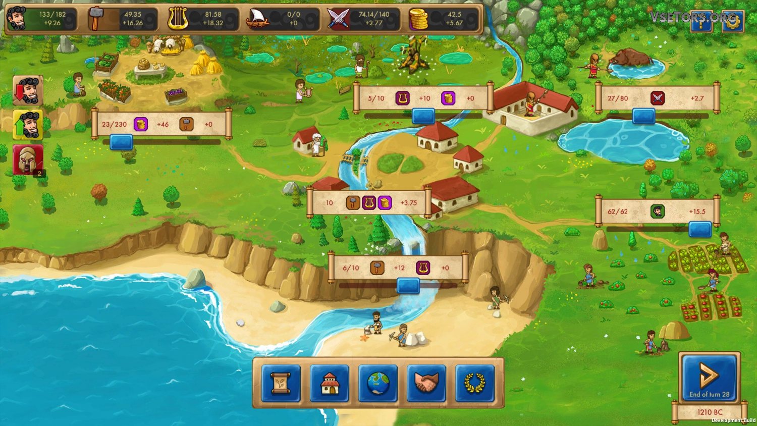 Кстати, есть три варианта сюжетной кампании, и каждый сценарий по-своему уникален. Например, вы можете попробовать превратить свое поселение в самые настоящие Афины, Коринф, или и вовсе Спарту. В каждом случае вас будут ждать уникальные события, и не только.