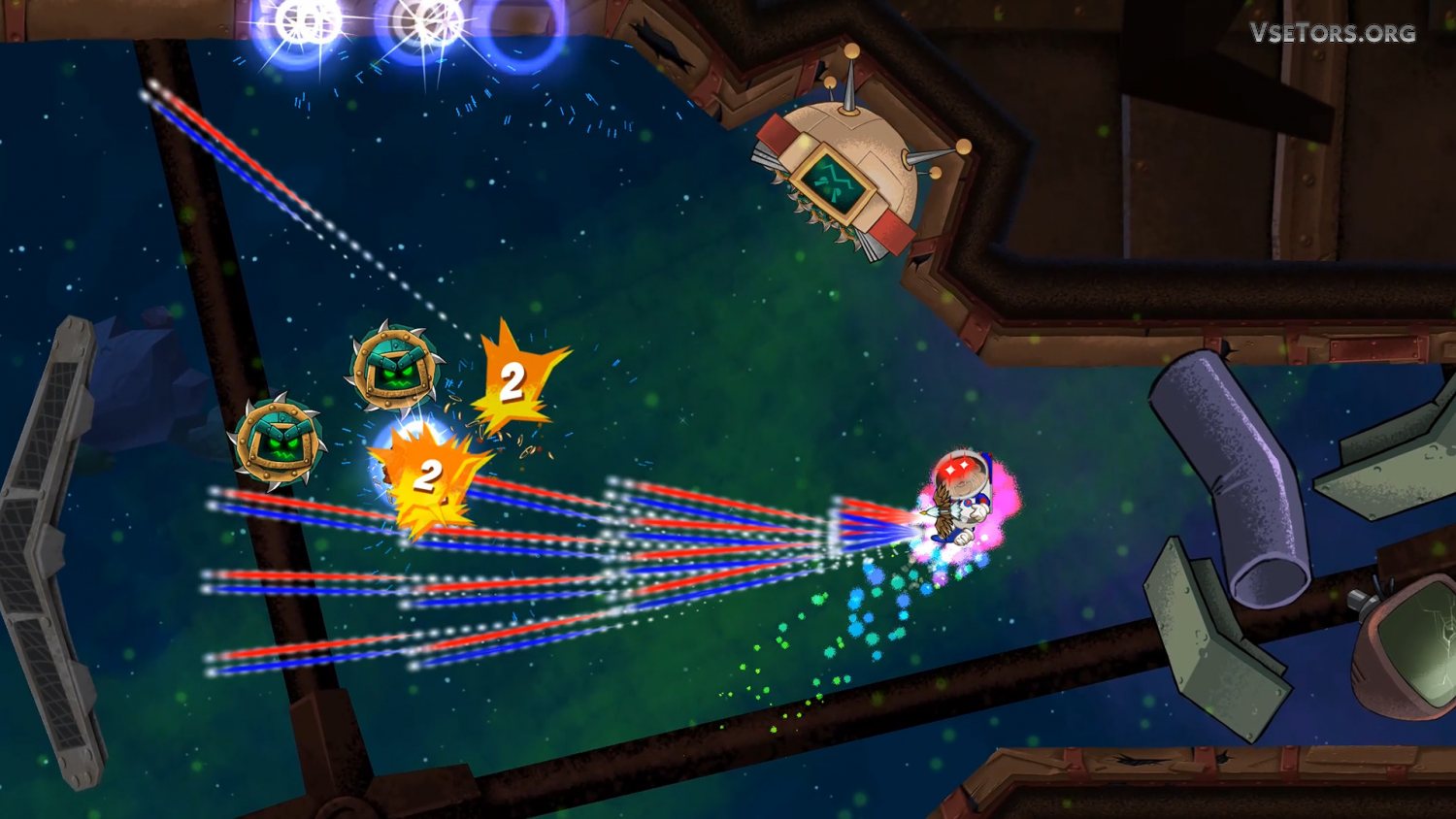 Снаряжение – это и вовсе отдельная тема. В вашем распоряжении в Space Otter Charlie будет широкий ассортимент способностей и умений, которым можно будет обучить выдр, и дополнить их можно будет еще и снаряжением. Что-то вы сможете найти в готовом виде, а что-то придется и самому создать из деталей, которые обнаружите. Вы сможете даже создать джетпак или ракетную установку, или и вовсе луч, что будет рикошетить от стен. Вариантов действительно много. У нас вы можете скачать Space Otter Charlie торрент последнюю версию бесплатно на компьютер.