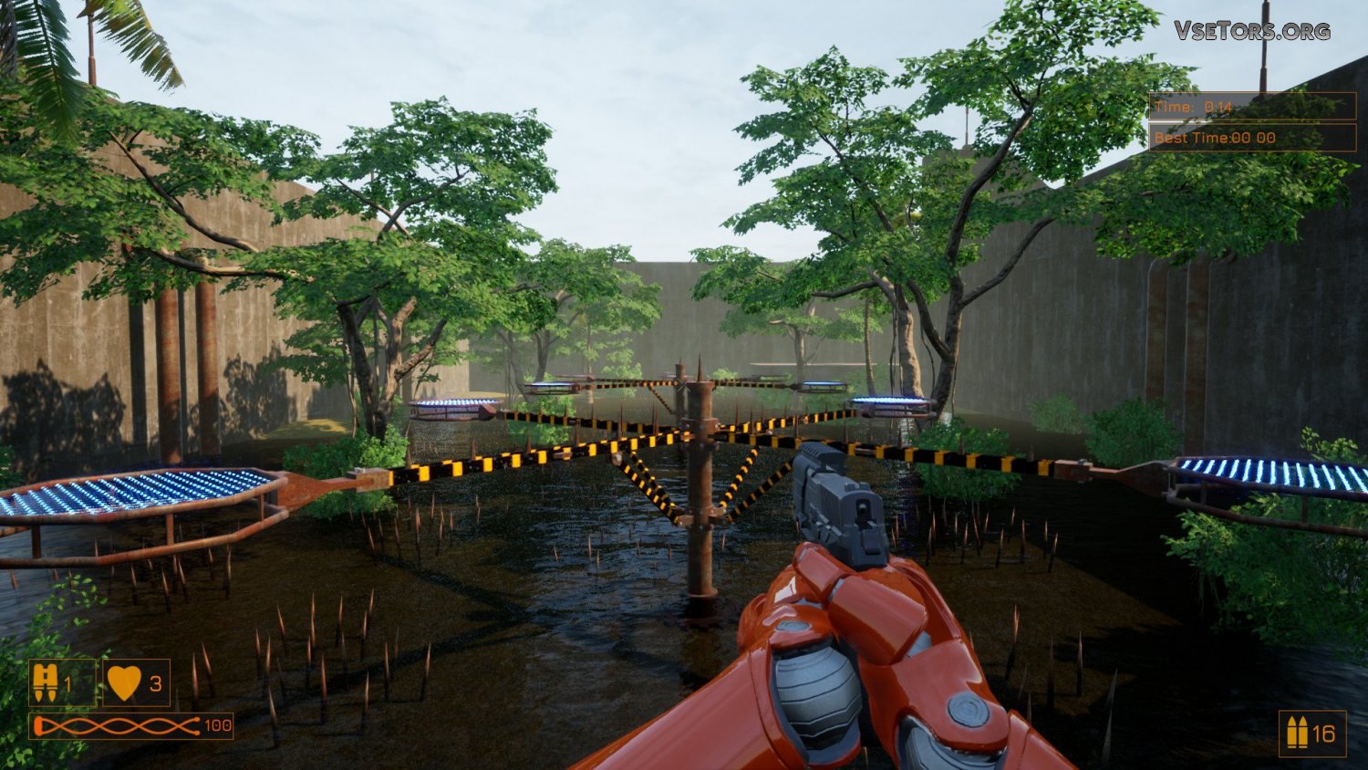 На уровнях вас будут ждать самые разные испытания. Тут вам и многочисленные платформы, по которым нужно прыгать, и смертоносные охранные дроны, что будут патрулировать местность, и даже ловушки. Где-то вам придется прыгать по узеньким стержням, торчащим из стен, где-то нужно будет проскакивать между шипастыми стенами, захлопывающимися как челюсти акулы, где-то нужно будет стрелять по мишеням или дронам, или и вовсе заниматься чем-то сверх странным. Вариантов испытаний тут реально много.
