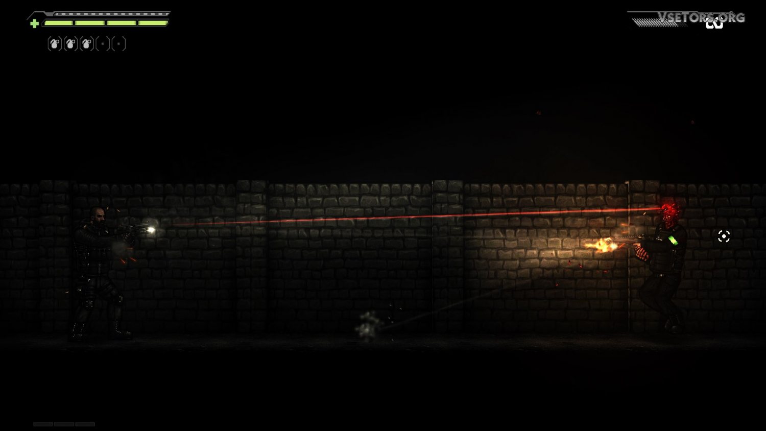 Игровой процесс является главной особенностью этой игры, ведь предлагает не типичную стрелялки с боковой прокруткой, а уникальный по своей сути кровавый экшен, в котором используется продуманная физика и продвинутая механика телесных повреждений. Хотя, в целом геймплей все сводит к стандартным для жанра процессам. Вы будете бежать вперед, убивать врагов, подбирать разное вооружение и даже улучшать его по возможности, разбираться с боссами и искать выход на следующий уровень.