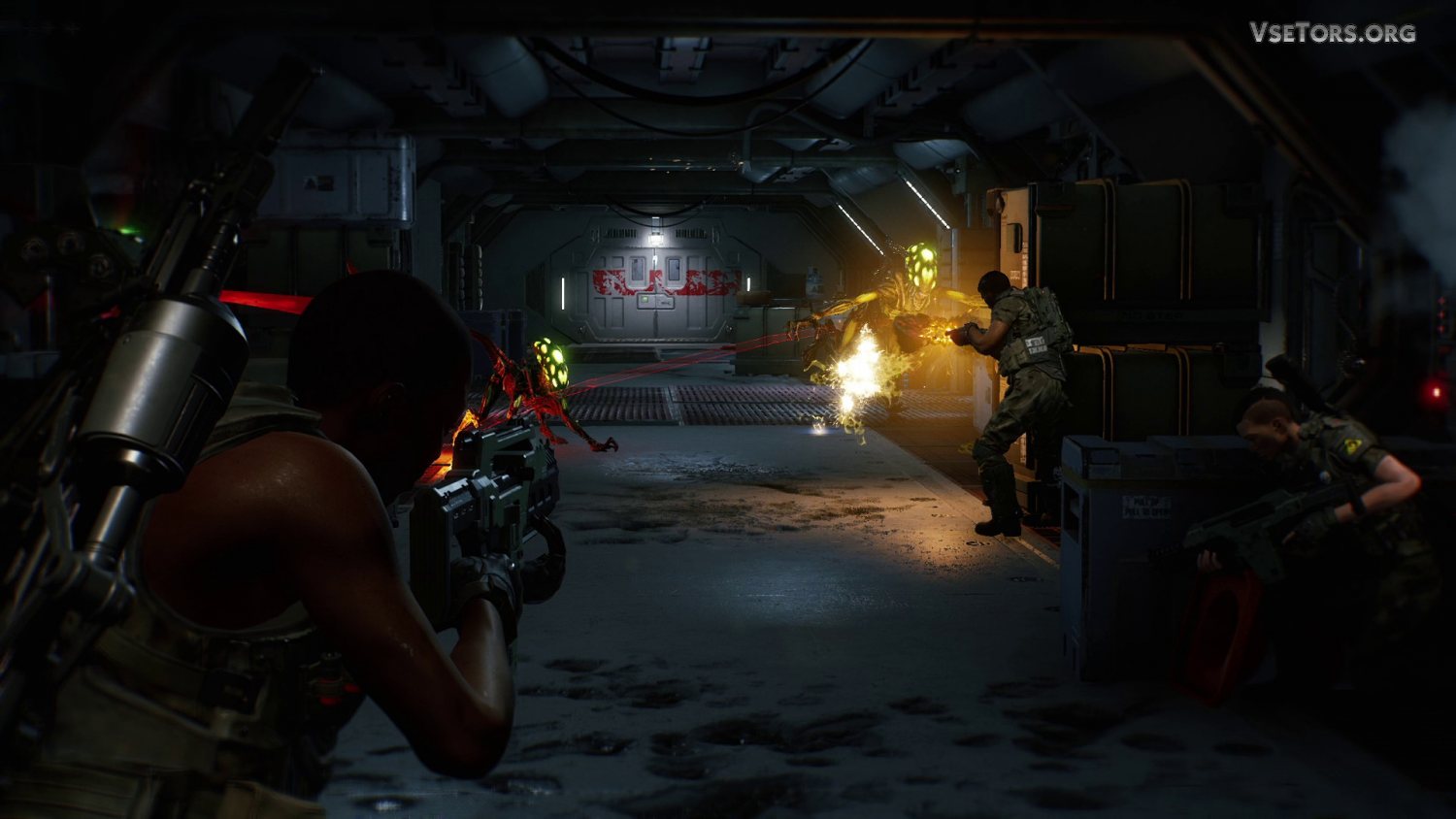 Ну а в целом все сводится здесь к типичному выживанию в непростых условиях. Вам придется исследовать космический корабль, выслеживать врагов. собирать материалы и разные ресурсы, выполнять задания и проходить сложные миссии, биться с огромными боссами, и делать многое другое. У нас вы можете скачать Aliens: Fireteam Elite торрент последнюю версию бесплатно на компьютер.