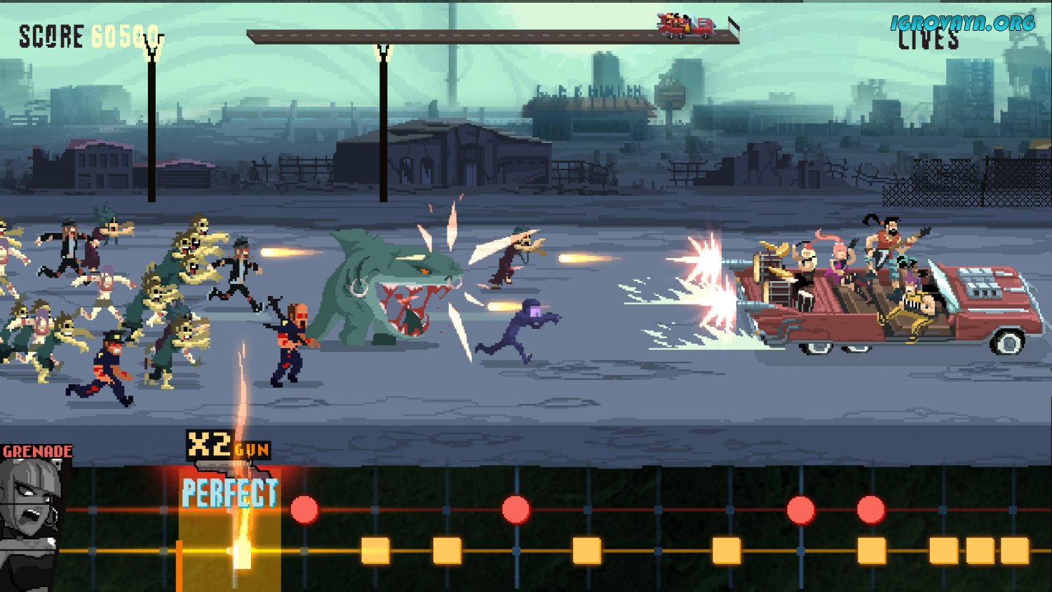Double Kick Heroes – это смесь безумия, шутера, апокалиптики и музыкальной игры, в которой вам придется мчаться на крутой тачке, убивать всевозможную нежить и просто веселиться, слушая крутую музыку…