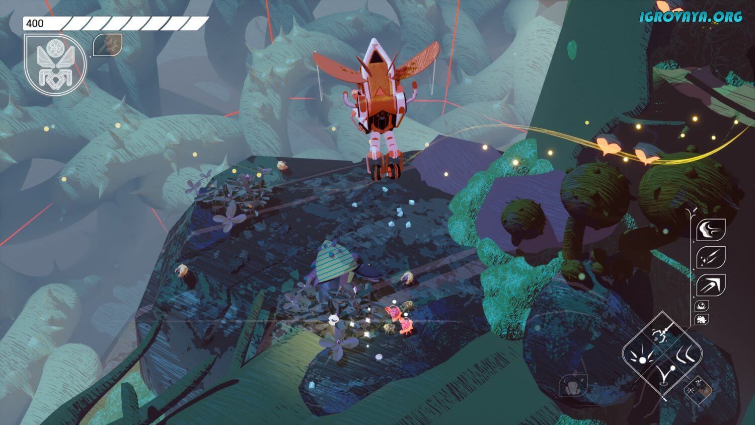 Игровой же процесс тут довольно прост. Вы будете путешествовать по разнообразным локациям, блуждать по миру в поисках подсказок, выполнять задания, общаться с персонажами, что поведают вам о красивой и интригующей истории здешнего мира, сражаться с жуками и насекомыми, что иной раз будут пытаться победить вас или украсть вашу добычу, и не только. Иными словами, скучать тут точно не придется.