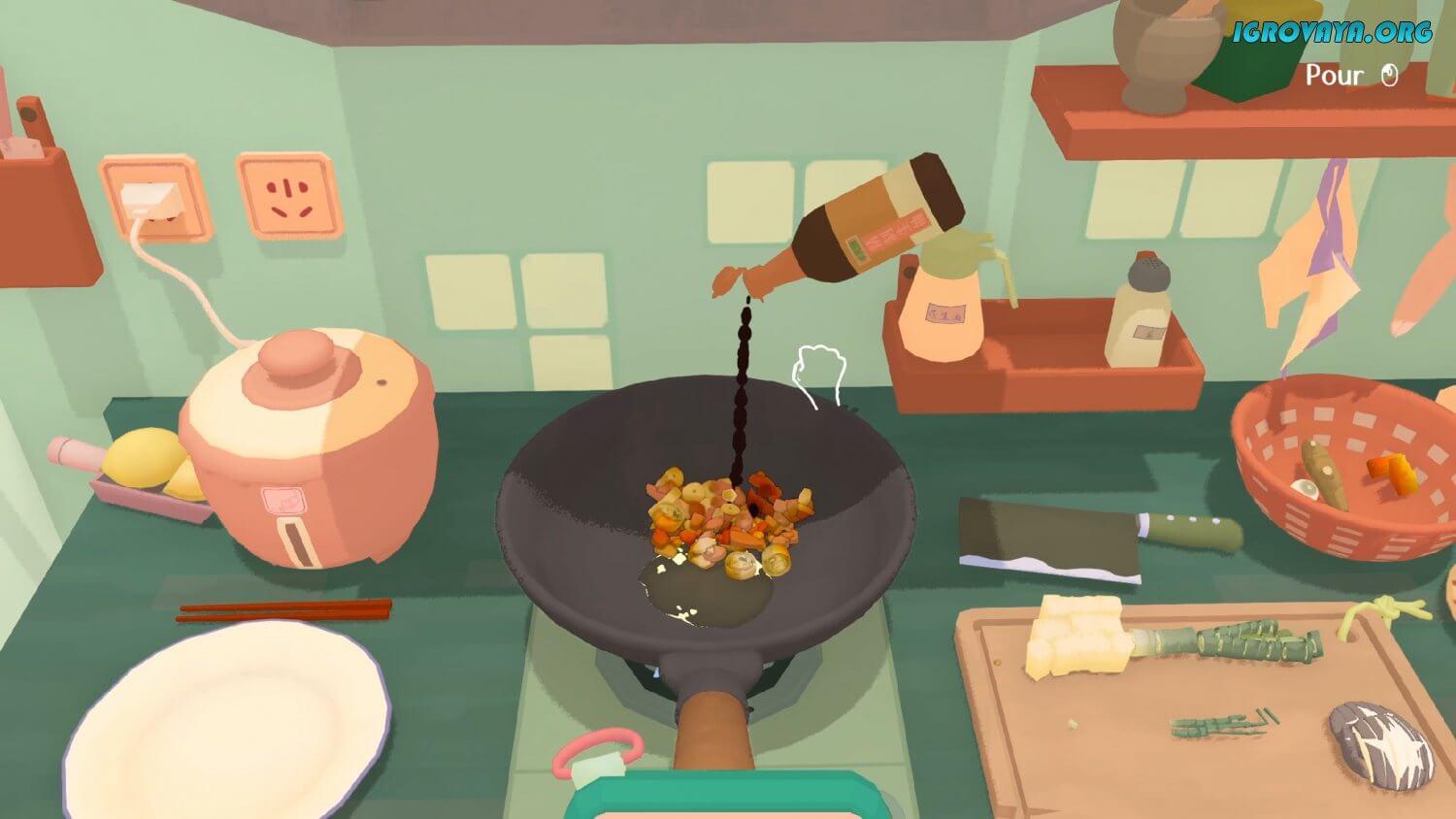Один из важнейших моментов игры заключается в том, что она предлагает полностью ручное управление всеми процессами. То есть, даже нарезать ингредиенты вам придется самостоятельно. То же самое касается и чистки картошки, к примеру, высыпания ингредиентов в сковороду, наливания масла, и всего остального. В конечном итоге то, что вы приготовите, будет выглядеть таким, как вы его сделаете.