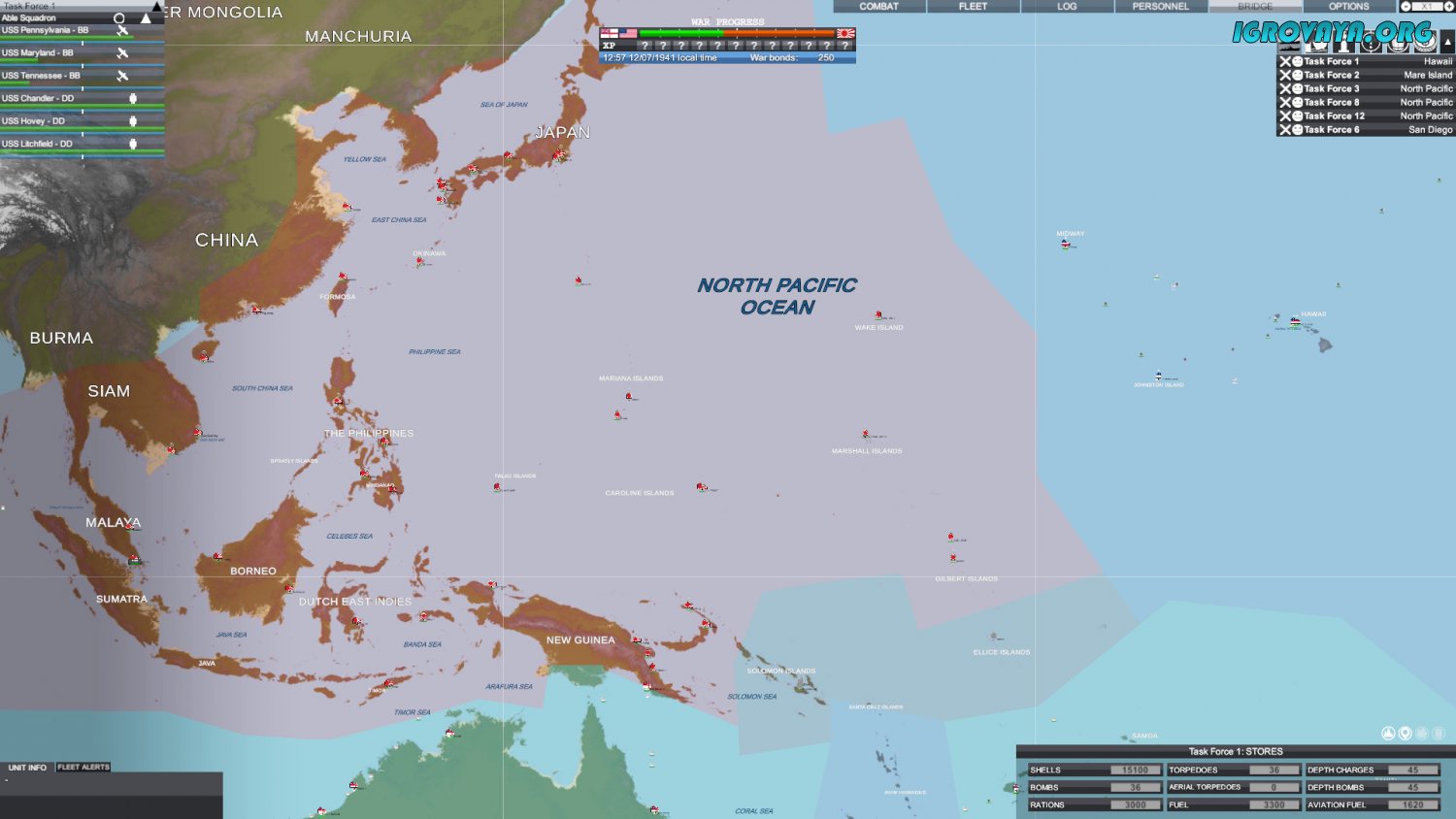 Геймплейные возможности просто невероятны. Вы можете управлять своей флотилией по всему Тихому океану, или же взять под управление отдельную эскадрилью, совершая вылазки и устраивая засады противнику. Точно также вы можете воевать без разбору, уничтожая корабли противников и топя подводные лодки, и можете и вовсе заняться стратегическими задачами, вроде уничтожения путей поставок боеприпасов врагу. И вообще тут вы можете делать все, что захотите! Главное – привести свой флот к победе над врагом и отбить тихоокеанские просторы.