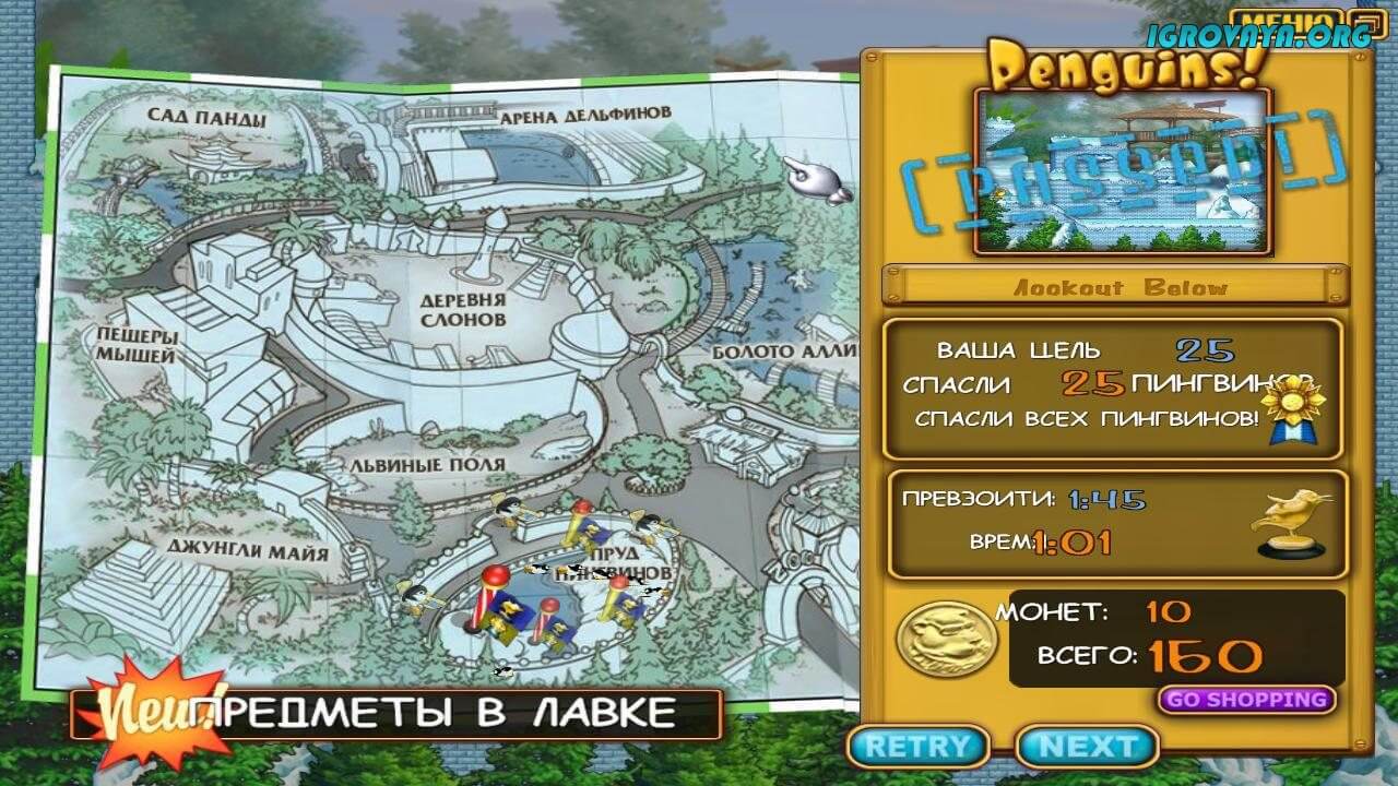 Берите под контроль целую стаю пингвинов в игре Пингвины! и помогите им сбежать из зоопарка, не попавшись на глаза безумному и жестокому сторожу. Используйте окружение, применяйте разные предметы, устраивайте подставы и ловушки, и главное, сбегите, чего бы вам это не стоило…