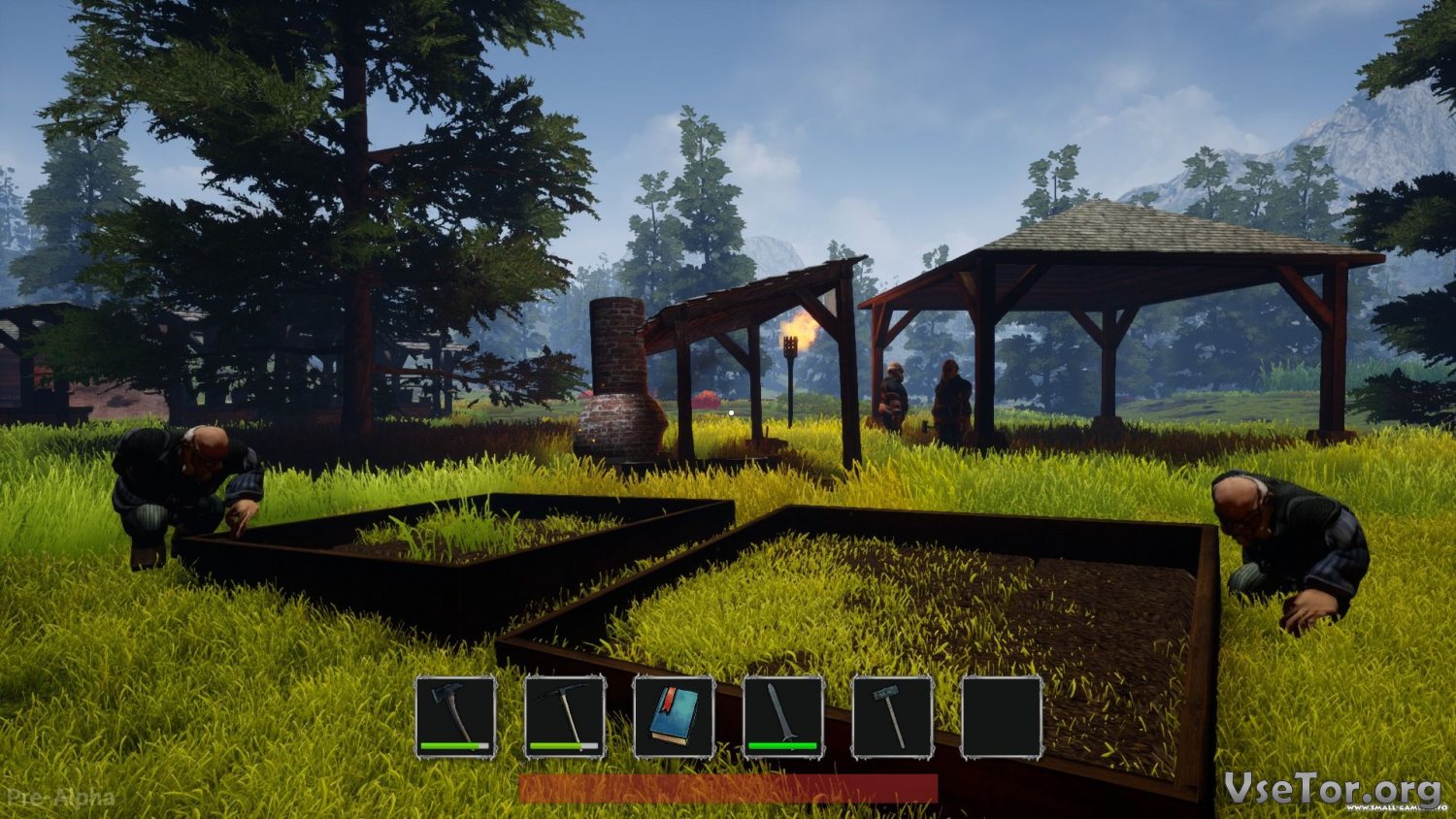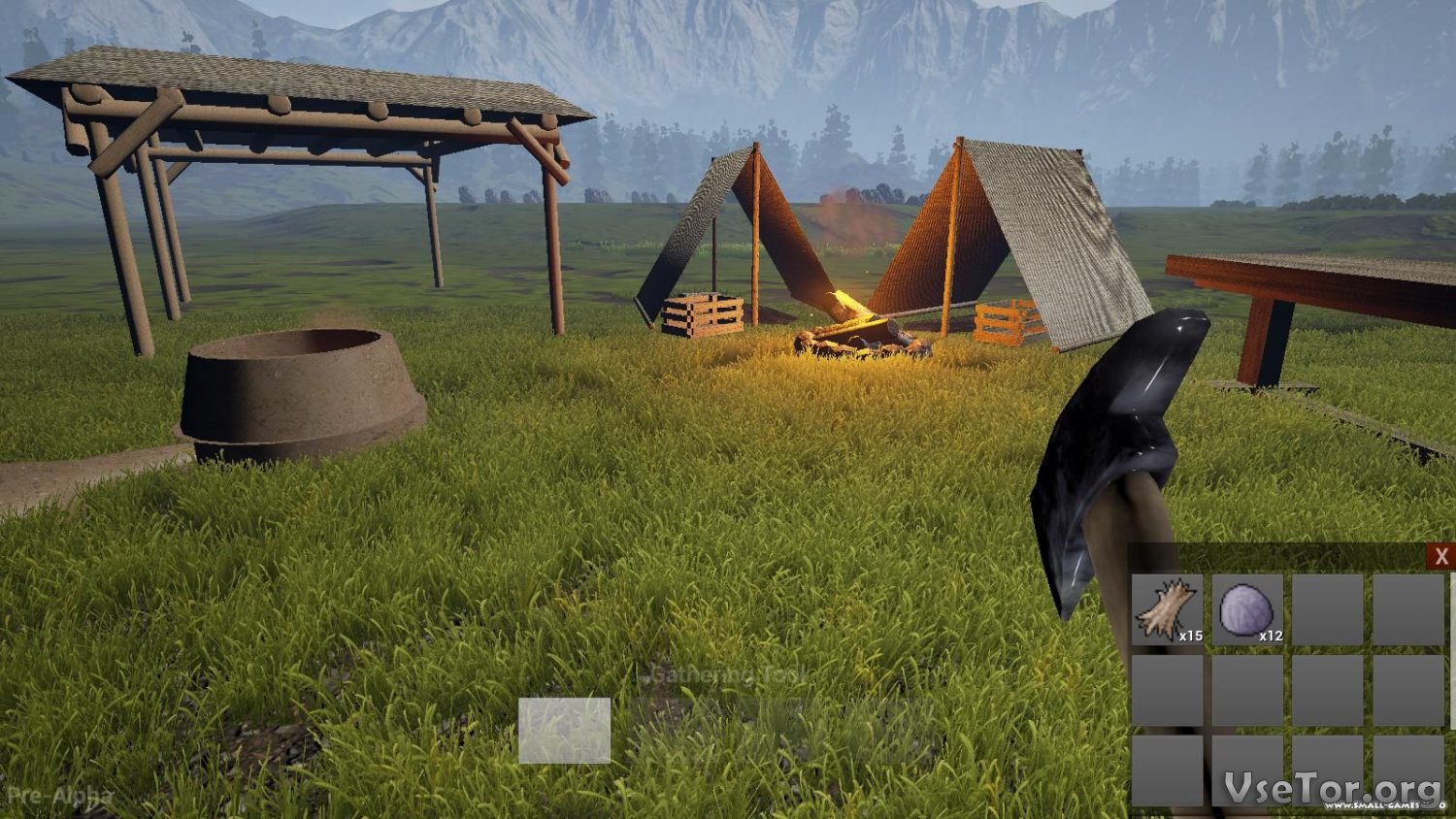 Но начинать вам придется с самого малого – сначала вы появитесь на открытой местности лишь в одежде и с первоначальным инструментом, и все, что вы сможете делать, это начать добывать нужные для строительства ресурсы. Вы можете добывать дерево, камень, сено и прочие материалы, и в итоге положить их в основание, фундамент вашего будущего города. Правда, в начале у вас будет всего лишь лагерь, с костром и несколькими палатками, и только через некоторое время он сможет начать расширяться.