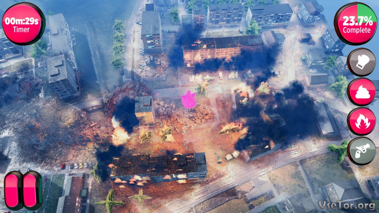 Играть же в Destroy The World вы будете за необычное розовое существо по имени «Бам-Бам». Это существо может вырастать до гигантских размеров, своим весом разрушать здания, растапливать ледники собственным дыханием, сжигать все, что окажется на пути, и делать многое другое.