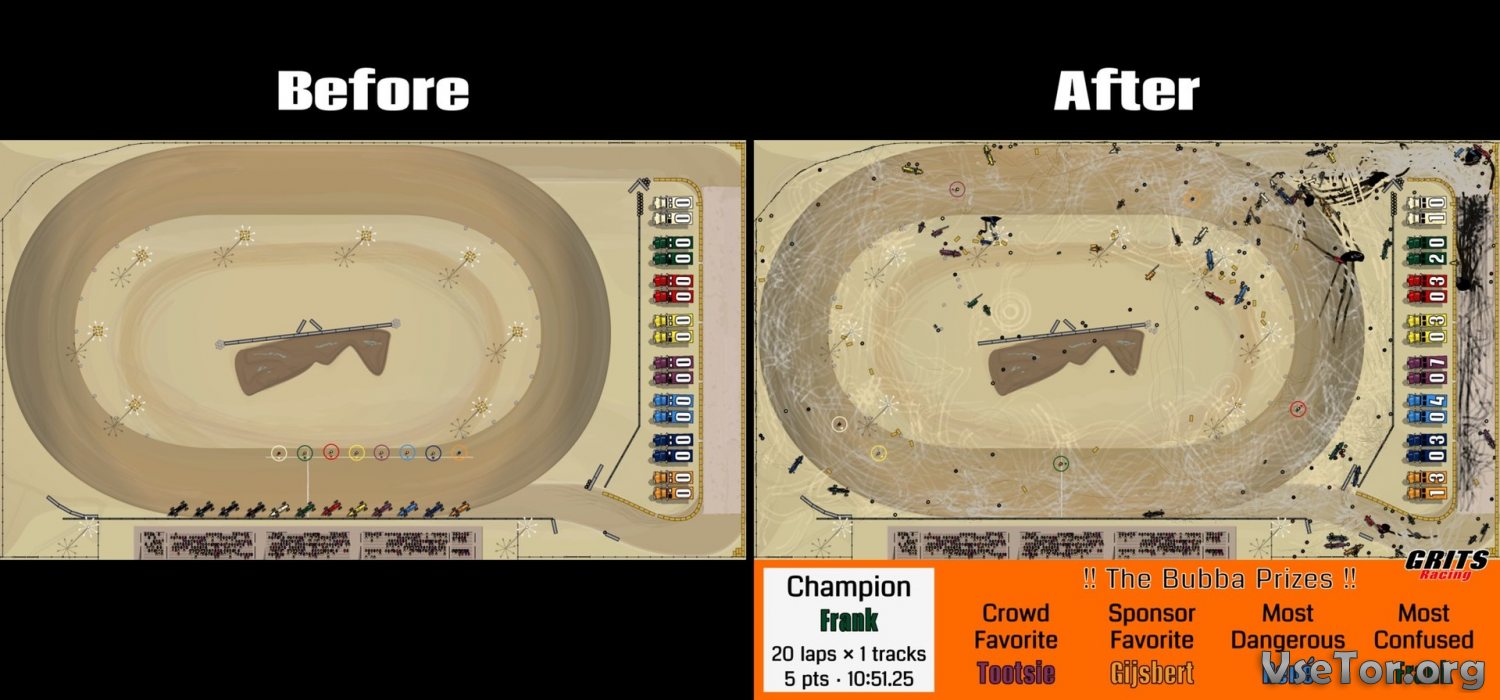 Кроме того, вас наверняка порадует еще и разрушаемость. Дело в том, что все автомобили здесь разрушаются. У одного может отлететь колесо, у другого и вовсе пол автомобиля может разорваться на части – будьте осторожны и поменьше врезайтесь. В общем, если вы хотите погонять по трассе и заодно как следует повеселиться, то эта игра точно создана именно для вас. У нас вы можете скачать GRITS Racing торрент последнюю версию бесплатно на компьютер.