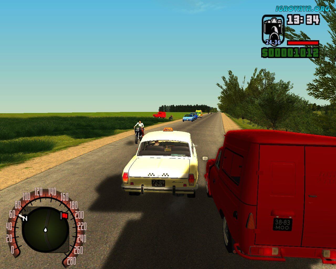 Отдельно же стоило бы сказать и об автомобилях. В целом они не изменились, если говорить о механике и физике, да и звучание мотора нисколько не изменилось, но при этом появилось много отечественных автомобилей. Теперь за вами будут гоняться настоящие гаишники на девятках и других не менее известных отечественных автомобилях, а по улицам будут кататься запорожцы и москвичи, жигули, различные модели «ВАЗ» и не только. Покататься на всех этих тачках, сплошное удовольствие, и особенно приятно то, что разработчики модификации сохранили оригинальную физику повреждений.
