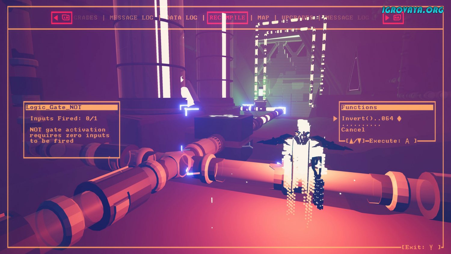 Recompile – крутой атмосферный экшен-платформер с видом от третьего лица, в котором вам будет предложено сыграть роль некоей сознательной программы из мира Мейнфрейма, жаждущей любыми путями избежать удаления…