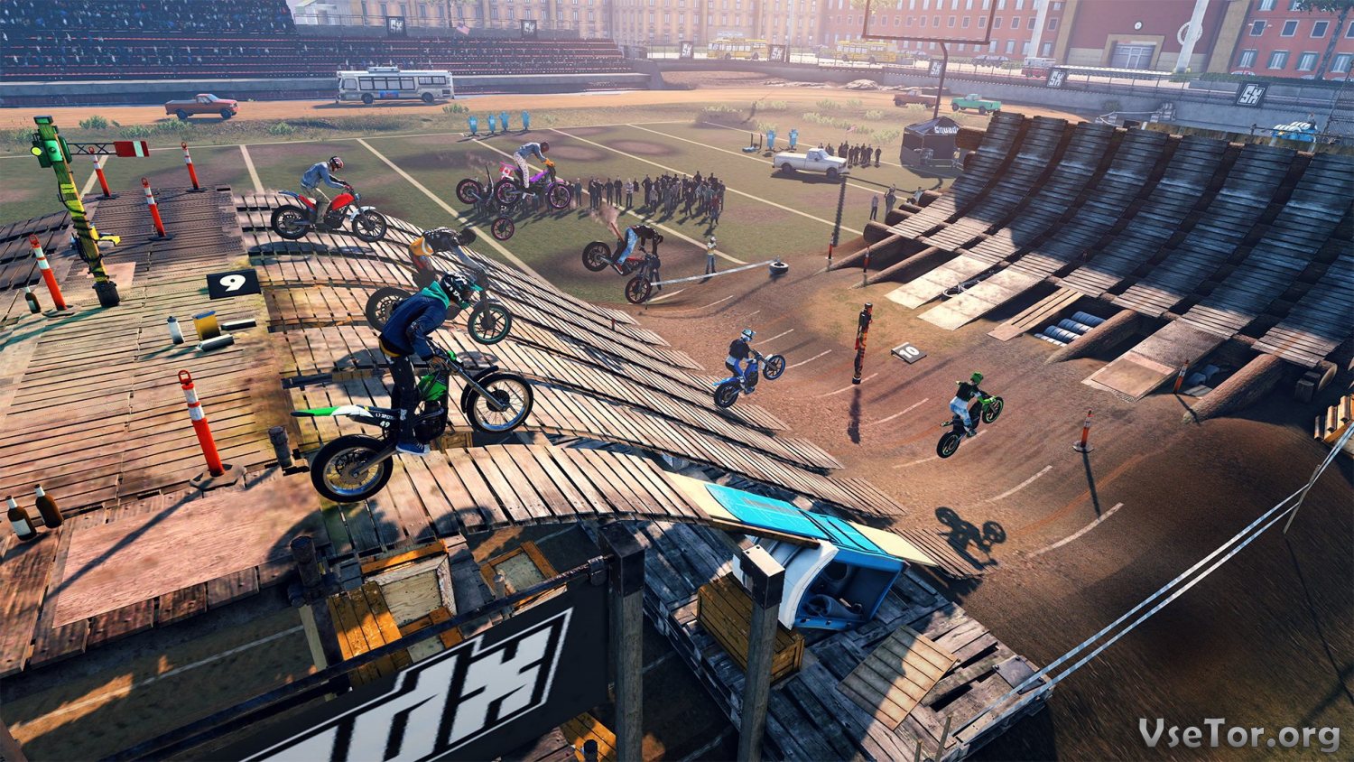 Что касается визуального оформления, так тут и вовсе не к чему придраться. Мало того, что байки и сами спортсмены наконец-то смотрятся как реальные, так еще и окружение теперь стало интерактивным, подвижным, живым, не таким, как было в предыдущих играх серии. Парите в воздухе на фоне билбордов, взлетайте на трамплине, паря над огненными пропастями, творите трюки на фоне салютов, вдохновляйтесь шумной публикой, болеющей на трибунах, и просто наслаждайтесь зрелищем.