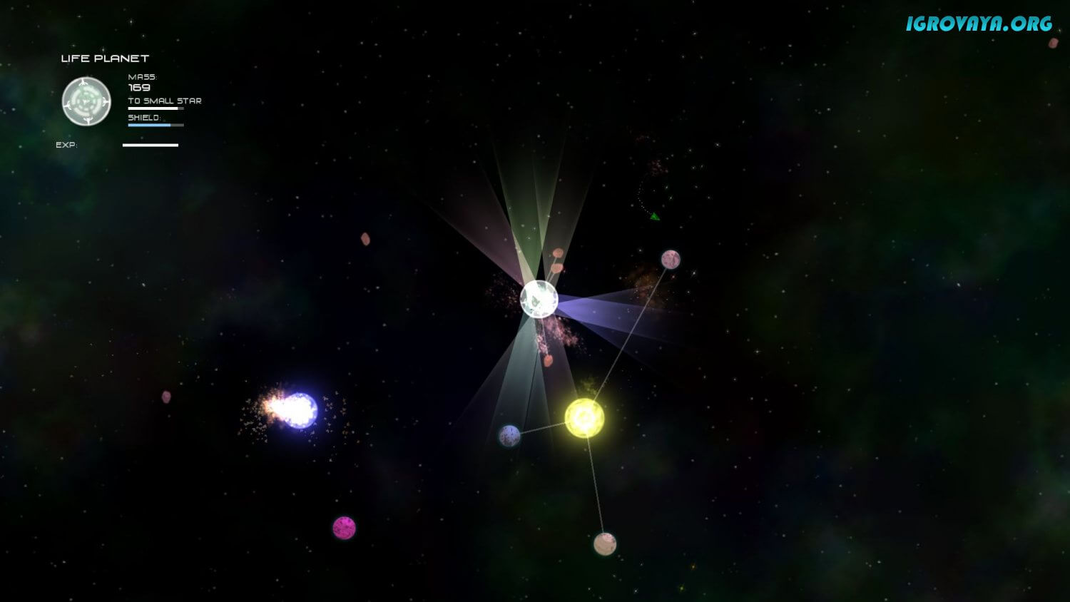 В самом начале вы сможете стать самым обычным астероидом, созданным неизвестным созданием, управляющим космосом, но уже через некоторое время вы сможете вырасти до размера планеты, отправиться в путешествие по вселенной, создать жизнь. Вариантов много. Тут есть место даже космическим сражениям, в которых вы будете сражаться с другими планетами и космическими телами, используя физику, гравитацию, и притяжение как таковых звезд.