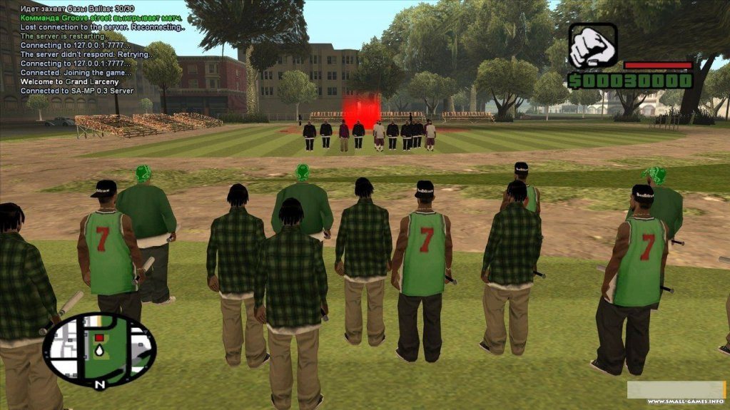 Никогда не хотели посоревноваться с друзьями, сразиться с такими же игроками в войне за районы, или и вовсе станцевать на машинах в турнире? Теперь у вас есть такая возможность! Берите истребители с военной базы и летите наперегонки до Лос-Сантоса, плывите наперегонки по морским просторам на скоростных катерах, сражайтесь на боевых вертолетах друг с другом, или и вовсе воюйте за территории – здесь можно все, главное, чтоб хватало фантазии. Кстати, у нас можно скачать GTA San Andreas с уже встроенным модом мультиплеера самой последней версии - SaMp 0.3.7 прямо сейчас. Сразу после установки вас будет ждать список серверов и море новых возможностей.