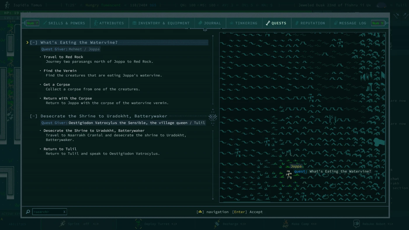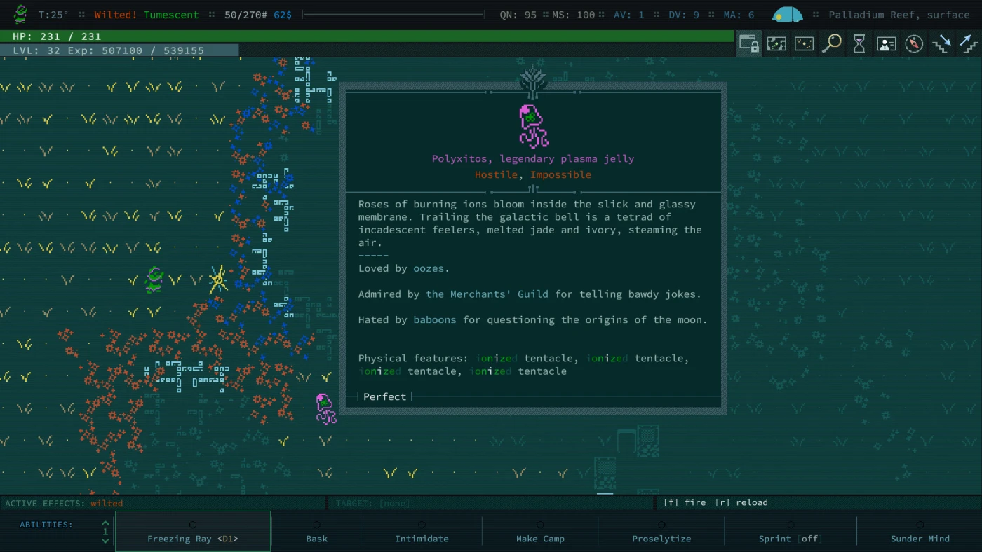 Caves of Qud — это не просто рогалик, а целая вселенная, где каждый пиксель дышит историей. Представьте мир, где вы — мутант с четырьмя руками и способностью стрелять кислотой из глаз, бредущий по соляным пустошам будущего, где ржавые конвейеры соседствуют с руинами древних цивилизаций. Здесь можно торговаться с псом-сенатором, ненавидимым медведями за испорченный ужин, или случайно разорвать пространство, просто чихнув (спасибо мутации «Квантовые судороги»).