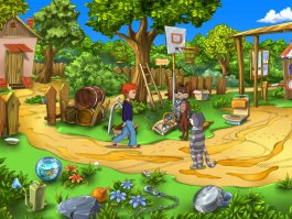 В целом, это типичный квест, в котором вас ждут исключительно простые всем знакомые механики. Вы будете исследовать многочисленные знакомые по мультфильму локации, общаться с разными персонажами, жителями деревни, решать головоломки и отгадывать загадки, и делать многое другое. Но при этом попутно вам придется играть еще и в мини-игры, в каждой из которых вас будет ждать какое-нибудь испытание. Например, одно из таких испытаний предложит в роли Шарика расставить пальмы во дворе по их местам, чтоб они не погибли в суровом климате Простоквашино. Точно также вас будет ждать еще много других не менее интересных мини-игр.