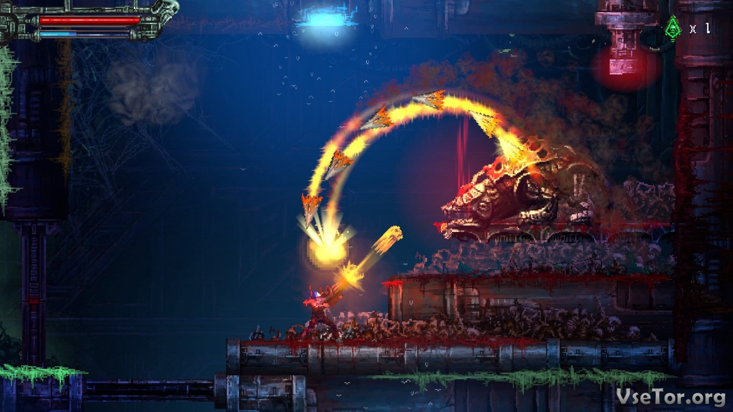 Valfaris – это безумный переполненный экстримом двухмерный платформер, в основе которого лежит хеви-метал, кровь, убийства противников, мясо, самое фантастическое оружие и просто отпадный сюжет…