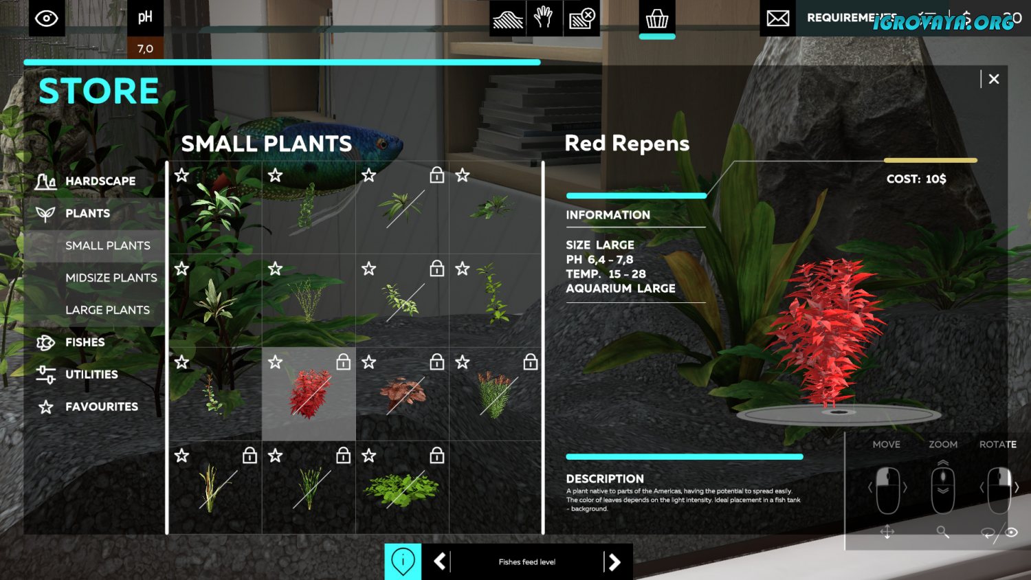 Но не думайте, что будет легко. Создать нужную атмосферу и условия, в которых рыбки смогут нормально существовать, не так уж и просто. Нужно будет учитывать характеристики рыбок, научиться ухаживать за ними, разобраться с тем, в чем нуждаются те или иные виды, и не только. Все это на словах звучит просто, но на деле вы столкнетесь с десятками наименований предметов, сложным оборудованием с разными характеристиками, и еще большим количеством разновидностей рыбок.