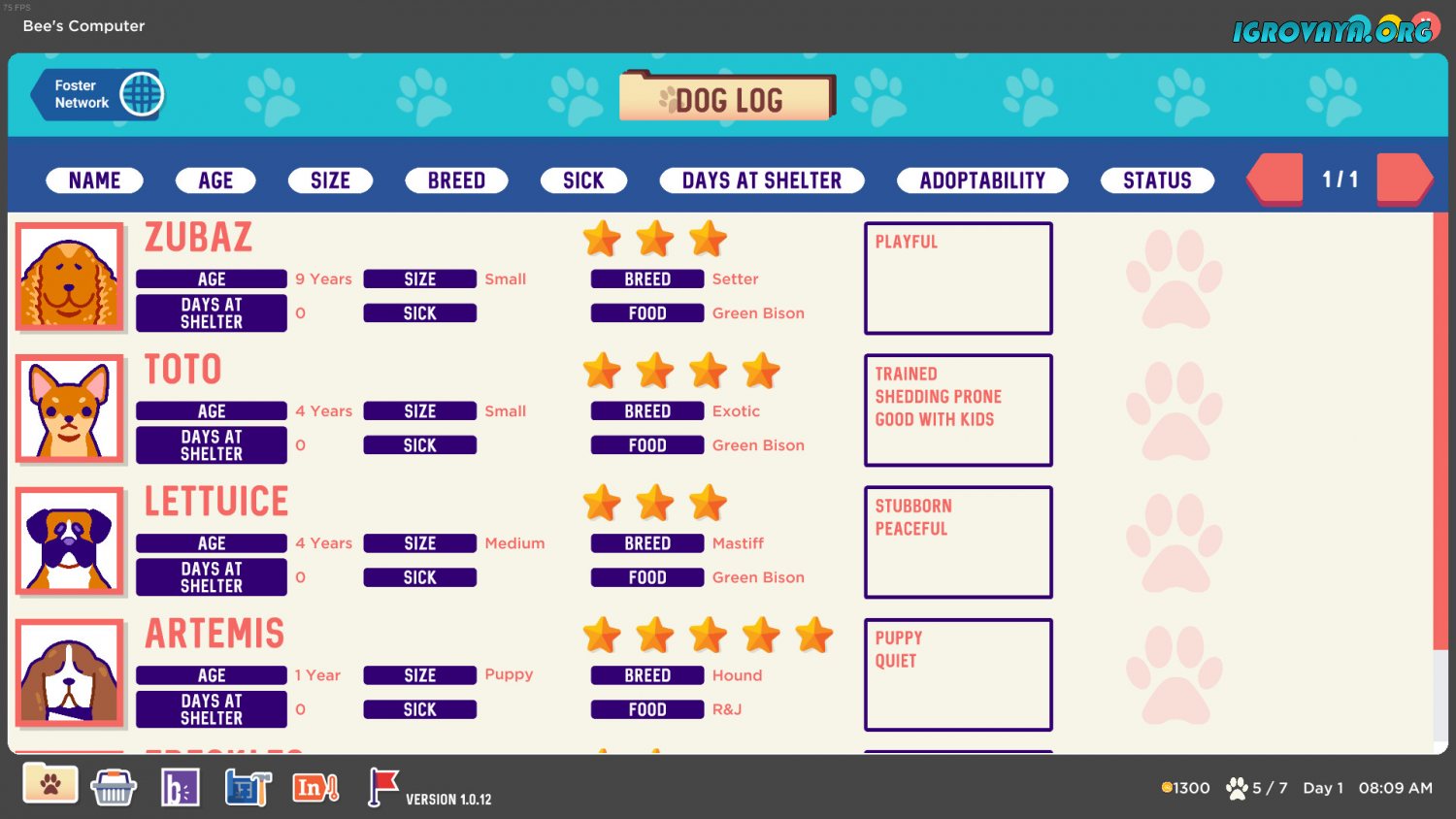 Обустройство и улучшение, а также модернизация самого приюта, дело не менее важное и кропотливое. Вам придется улучшать приют, покупать новые вольеры, обустраивать места для прогулок, закупать еду, и не только. Со временем вам станет тяжело самому справляться со всем, и тогда вы сможете нанять сотрудников.