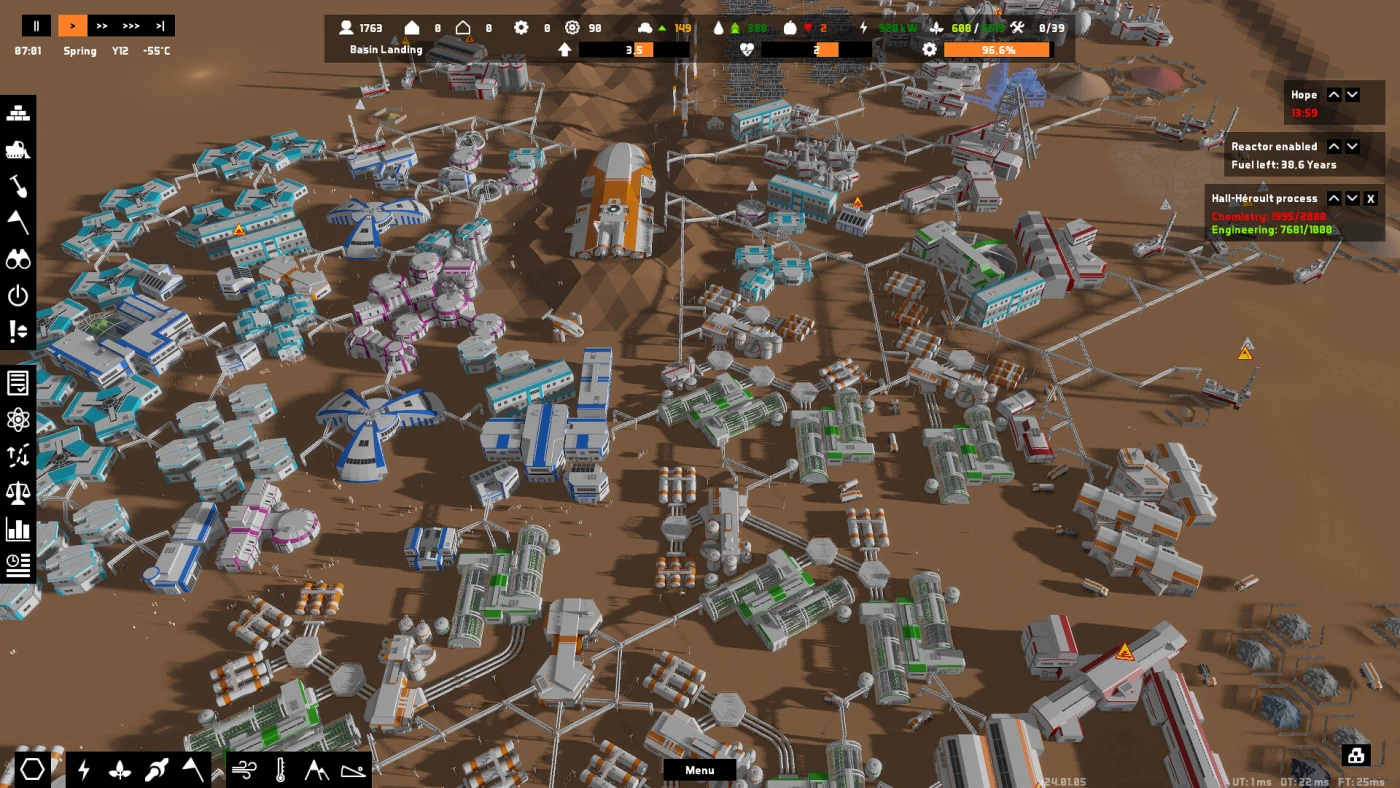 Здесь нет мирного освоения — только хрупкий баланс между расширением и экономией. Нужно строить кислородные станции, но их трубы требуют стали. Сталь плавят из руды, но шахты потребляют энергию. Генераторы работают на угле, добыча которого убивает шахтеров без систем вентиляции. И всё это — под пристальным взглядом колонистов: у каждого есть характер, потребности и тревожная статистика «уровня надежды». Продумайте автобусные маршруты к рудникам, введите карточную систему или рискните разбудить всех замороженных — решения неочевидны, а подсказкой служит лишь стремительно опустошаемый склад.