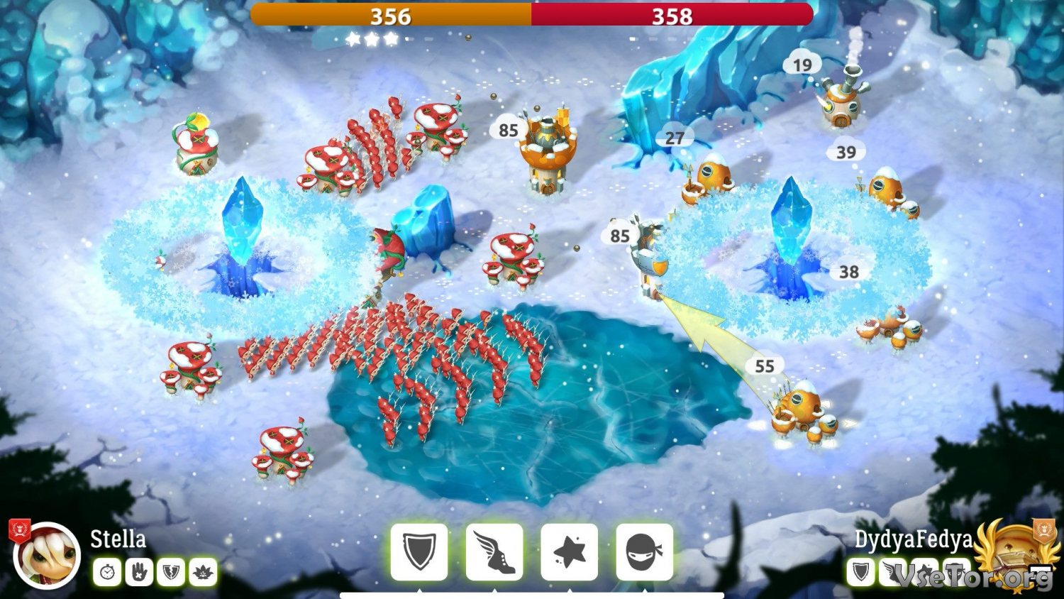 Никого строительства домов, зданий и прочих конструкции, никаких разновидностей юнитов – только стратегическая война, в которой вам нужно предугадывать действия противника. захватывать его грибные деревни и заодно оборонять свои. Все очень просто, но при этом и интересно, ведь, во-первых, такие войны могут длиться бесконечное количество времени, а во-вторых, играть в эту игру можно как посети, так и с друзьями в трех разных режимах.