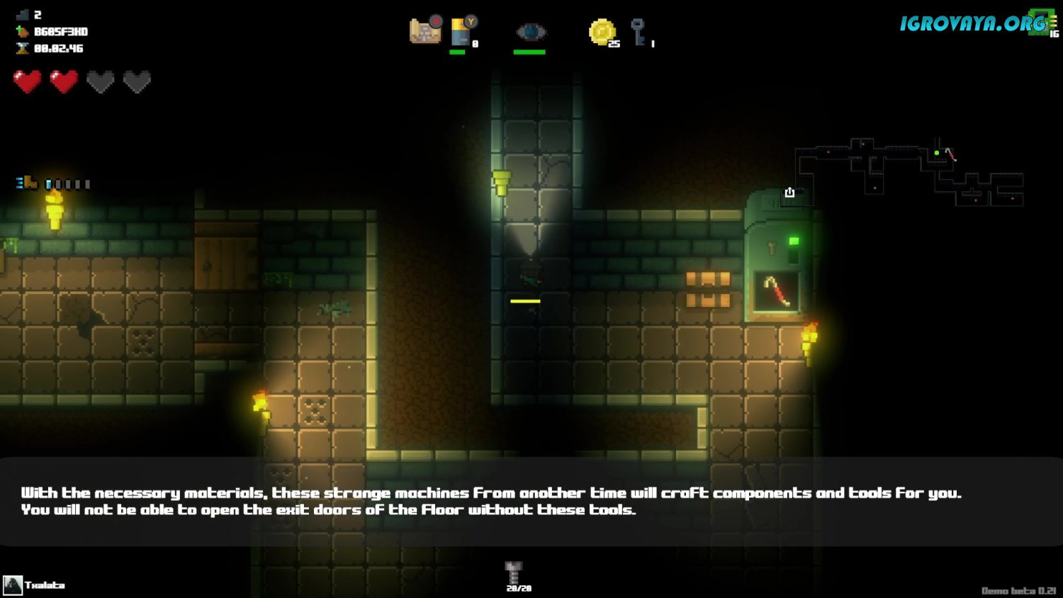 Крепость состоит из кучи этажей, коридоров, скрытых залов и комнат, и не только. Вы же по ходу исследования должны будете обойти все вдоль и поперек. В ходе исследования вы сможете найти много полезных предметов, узнать, что тут на самом деле происходит, и раскрыть тайны, что скрывались тут веками. Но будьте осторожны. Мало того, что тут итак опасно, так еще и каждое новое прохождение будет другим, потому как карта крепости генерируется автоматически каждый раз, когда вы начинаете сначала.