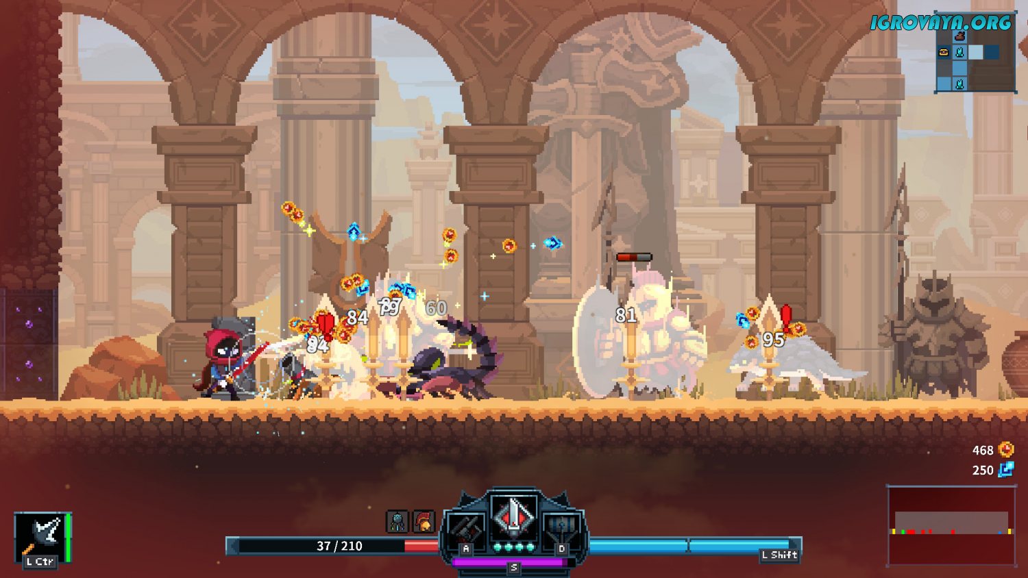 Это экшен-платформер, выполненный в стилистике «roguelite» жанра. В ходе прохождения игры вы будете передвигаться и путешествовать по двухмерным уровням, сражаться с многочисленными врагами, преодолевать разнообразные преграды, попутно прокачиваясь и становясь все сильнее, и взаимодействовать с окружающим миром. Каждый уровень здесь станет для вас самым настоящим испытанием, в котором от вас потребуется и умение сражаться, и смекалка с хитростью.
