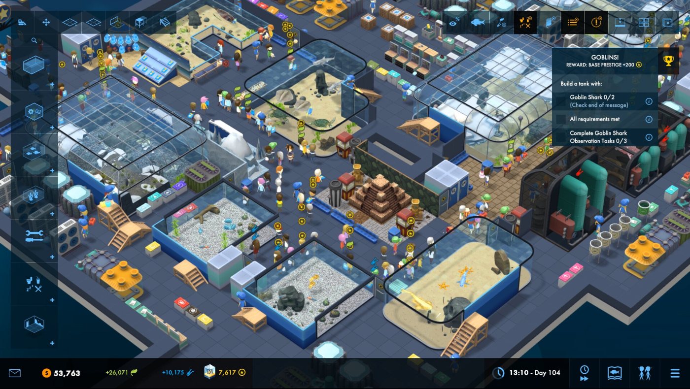 Каждое помещение вы будете создавать вручную. У вас будет широчайший арсенал инструментов, с помощью которых вы будете строить аквариумы, наполнять их всем необходимым, закупать оборудование и различные аксессуары, и создавать обстановку, в которой посетители вашего парка будут довольны всем без исключения.