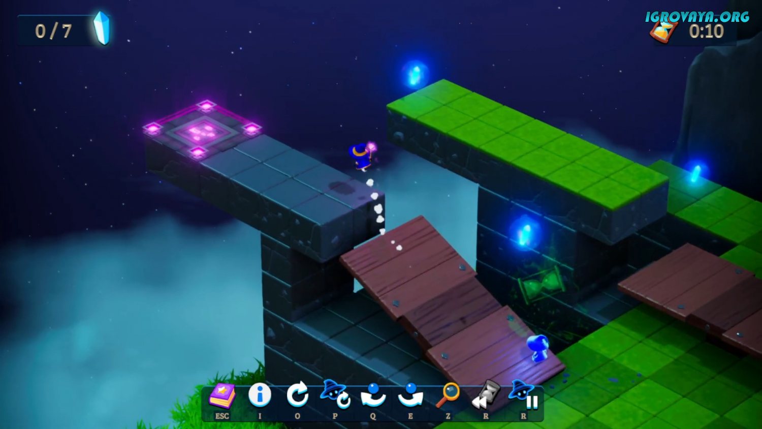 Сами по себе испытания довольно сложны, и предлагают не просто стандартное преодоление преград, но также и игру со временем. Так, первым делом вы должны будете уяснить простую истину о том, что в этой игре вам не обойтись без кооперирования с самим же собой из другого времени. Визуально это выглядит следующим образом – вы совершаете действия на уровне, потом включаете перемотку времени назад и оставляете свою копию, и потом подстраиваете новые действия под действия своей же копии. Когда все готово, запускаете время заново и наблюдаете за тем, как все ваши копии действуют слажено и вместе.