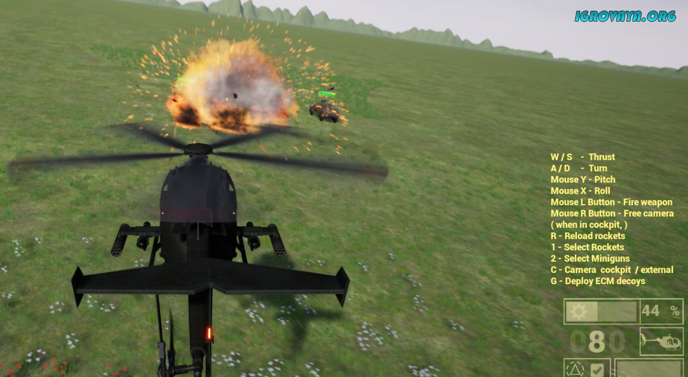 В вашем распоряжении будет реалистично воссозданный вертолет и несколько видов вооружений, которые вы сможете использовать против врагов. А еще в Helicopters Simulator 2020 вас ждет много испытаний, награды, и несколько дополнительных режимов.