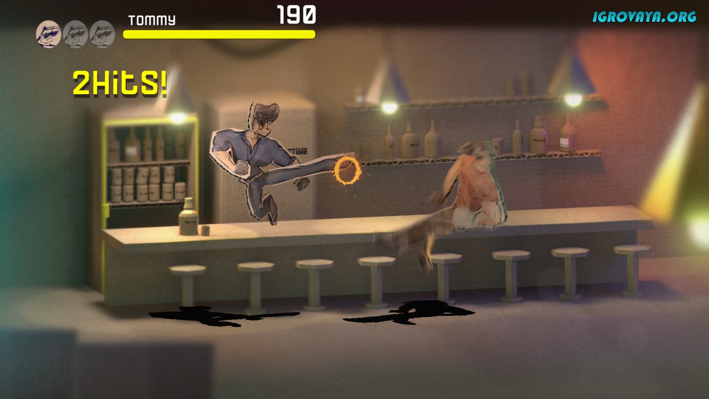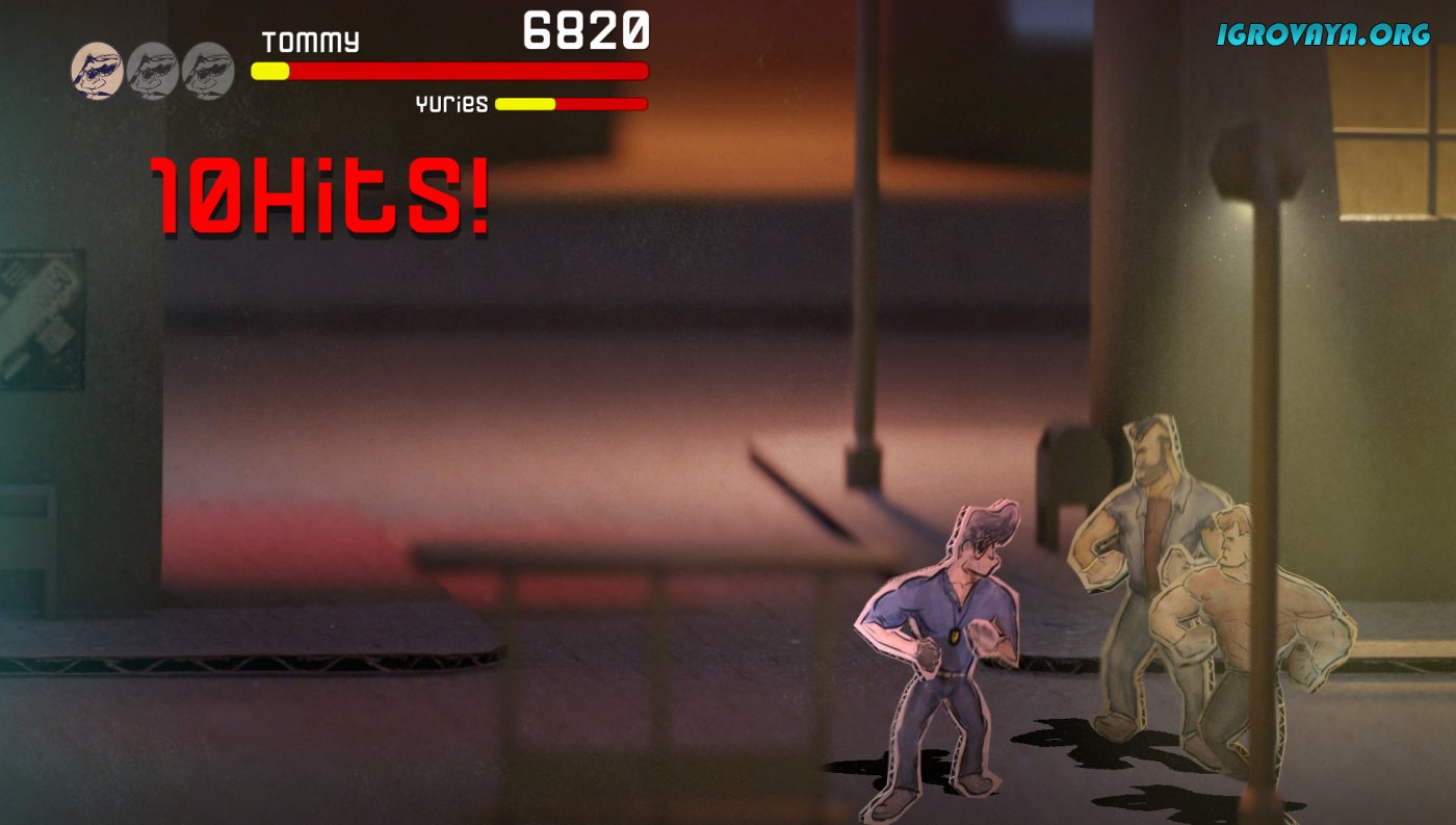 Отправившись на улицы города, вы сразу же погрузитесь в череду безумных сражений. Ваши враги, нарисованные вручную и выполненные в «картонной» стилистике, заставят вас изрядно попотеть. Они будут нападать на вас целыми толпами, бежать на вас со всех сторон, атаковать вручную или с помощью холодного оружия, и не только. Вам же придется обороняться и атаковать одновременно. Но делать это нужно осторожно – тут не получится просто бить всех, кто окажется на пути. Здесь нужно продумывать каждый шаг и планировать каждое действие.