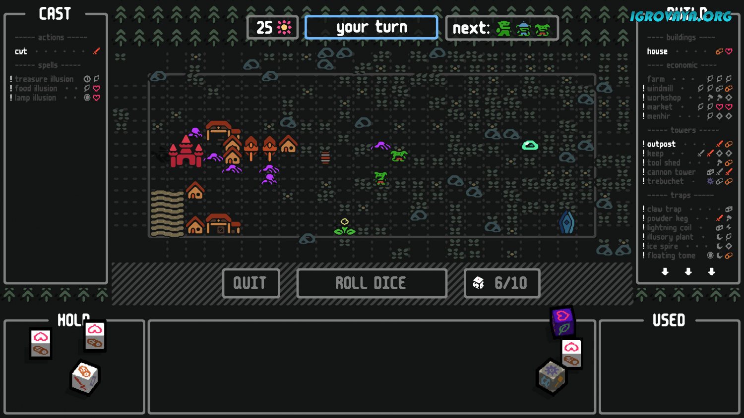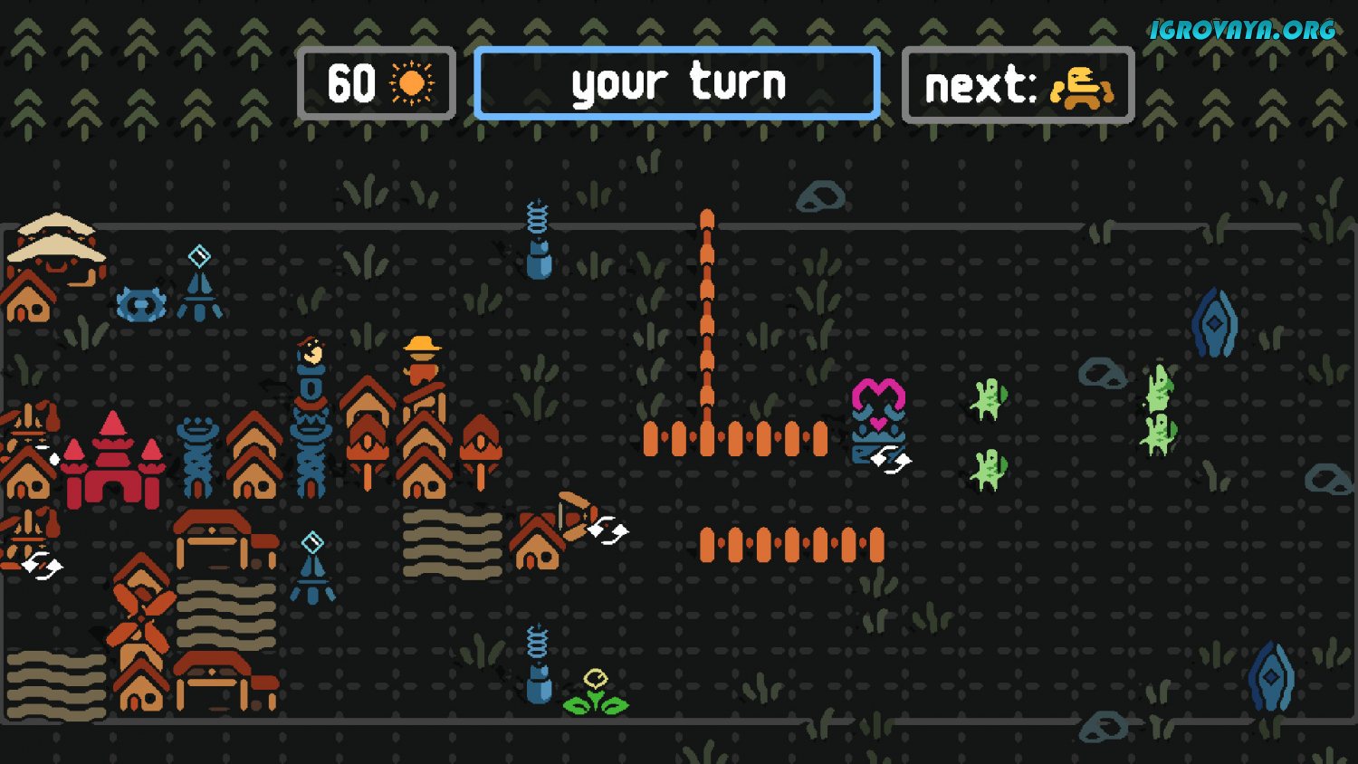 Перед вами будет простенькая небольшая пиксельная карта со зданиями и дорогами, по которым враги будут подбираться к вашему городу. Вам нужно сделать так, чтоб враги не добрались до крепости. Вот только сделать это будет непросто как минимум по двум причинам. Во-первых, тут нет башен, которые можно строить в неограниченном количестве. А во-вторых, здесь оборона зависит не только от защиты, но также и от того, как устроено королевство.