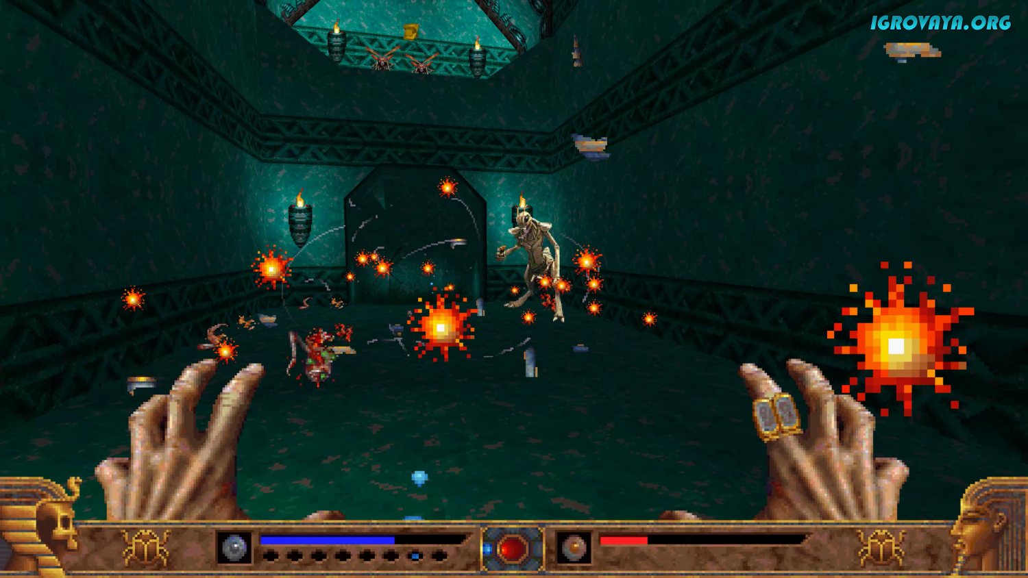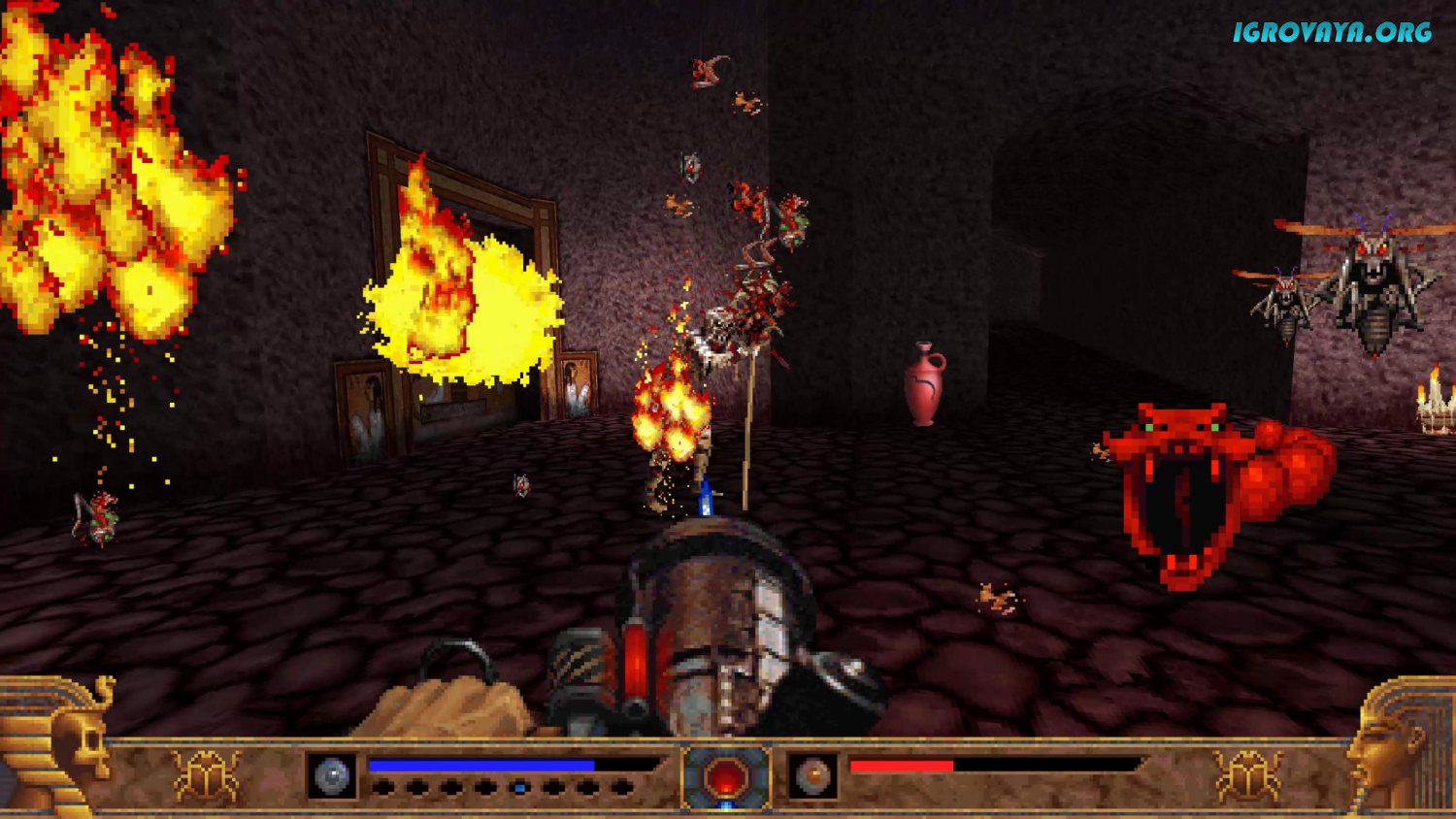 В вашем распоряжении будет море различных вооружений, и каждое оружие отлично подойдет для борьбы с определенным типом врагов. Есть огнемет, мощный пулемет, гранаты и пистолеты, и даже волшебный посох, что позволит вам крушить врагов с помощью магических заклинаний. используйте все, что окажется в вашем распоряжении, исследуйте мир гробниц и тайн в игре PowerSlave Exhumed, докопайтесь до истины и постарайтесь выжить. У нас вы можете скачать PowerSlave Exhumed торрент последнюю версию бесплатно на компьютер.
