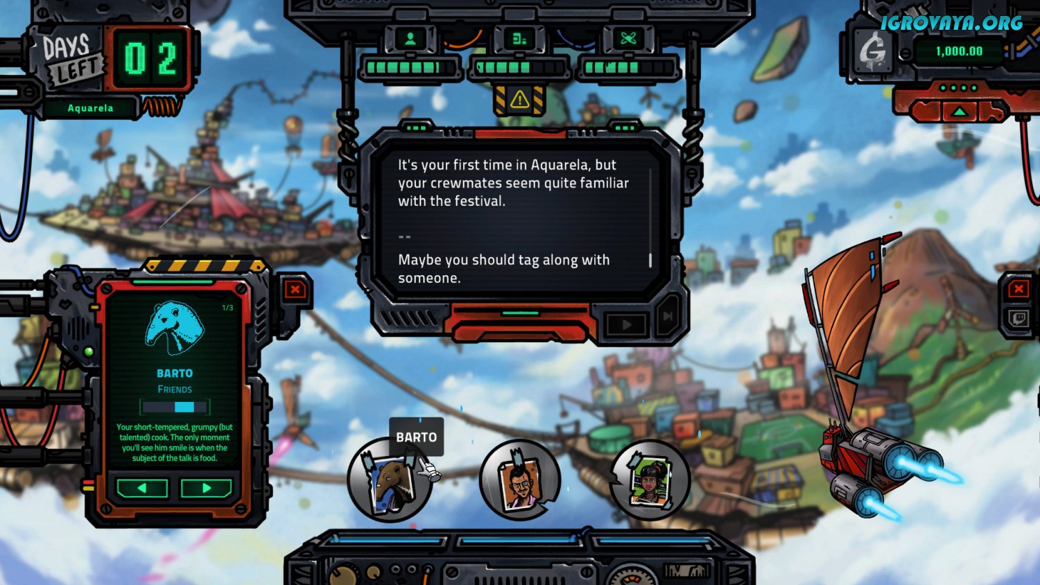 В вашем распоряжении будет не только корабль, но также и подчиненные, сотрудники, что будут помогать справляться с кораблем. Они могут стать вашими друзьями, или же врагами и соперниками. И только вы будете решать, как будут складываться ваши с ними отношения. Принимайте различные решения в рандомных событиях и ситуациях, влияйте на мышление членов экипажа и их привязанности, и наблюдайте за тем, как ситуация будет развиваться далее. У нас вы можете скачать Sky Caravan торрент последнюю версию бесплатно на компьютер.