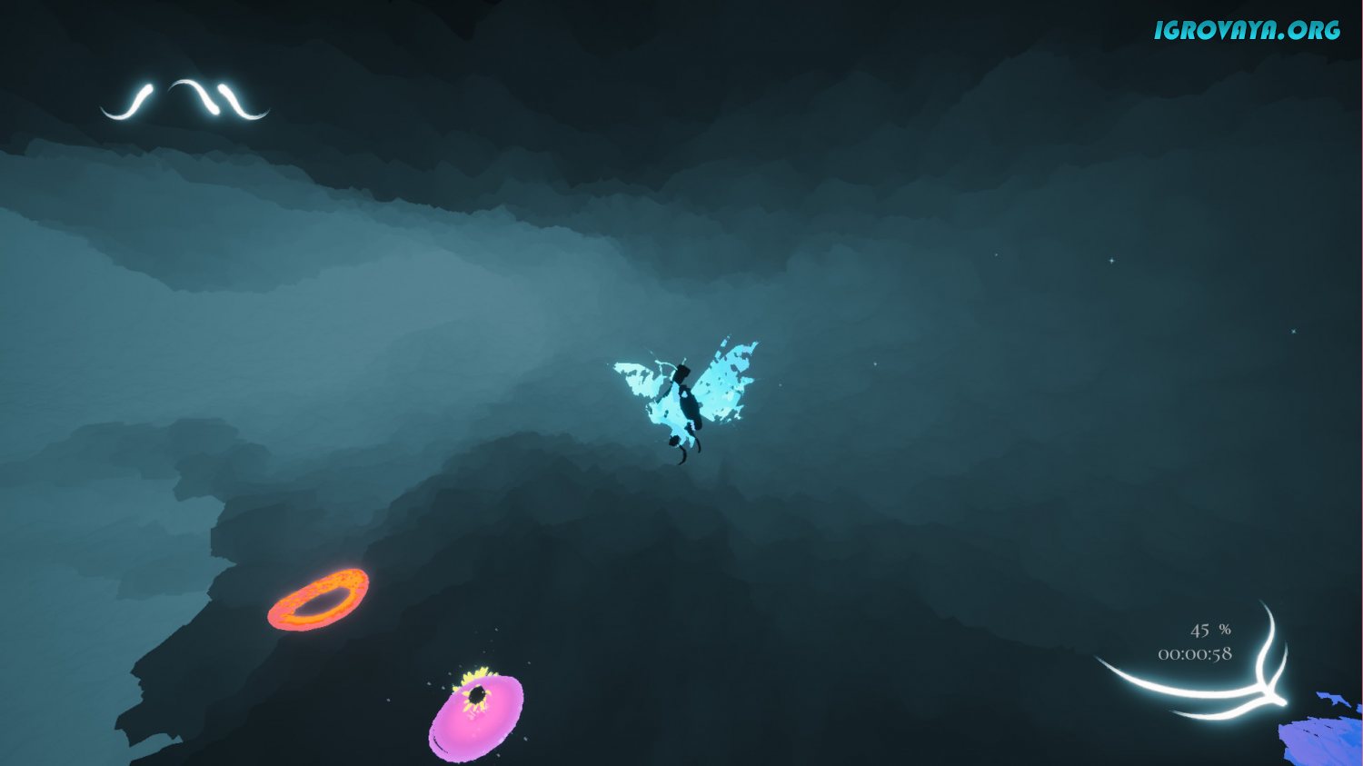 Игровой процесс в этой игре не так уж и сложен, но предлагает при этом довольно много сложных механик, которые вам придется не только изучить, но еще и адаптировать так, как нужно. А суть проста – вам нужно взбираться вверх, используя платформы и различные их свойства, не падая вниз. При этом, всего одна ошибка в движении может привести к тому, что вы упадете в самый низ, на самое начало уровня, и должны будете взбираться вверх заново. Правда, в игре также есть и облегченный режим с контрольными точками.